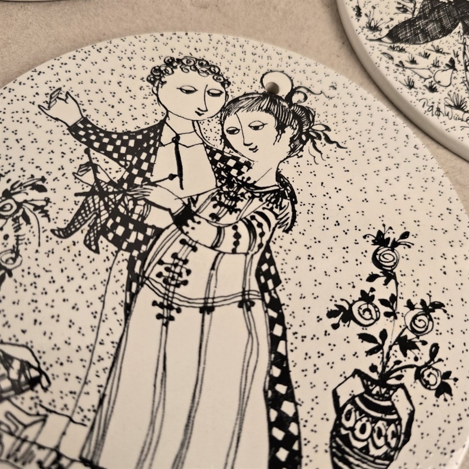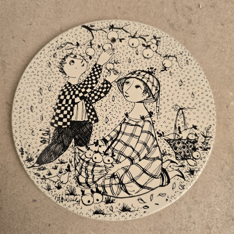 Hver plade er smukt dekoreret med sort-hvide illustrationer, der repræsenterer månederne fra sensommer til vinter.