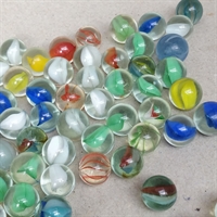 Hver glaskugle måler 1,5 cm. i diameter og skinner i en palette af forskellige levende farver, hvilket gør hver kugle unik.
