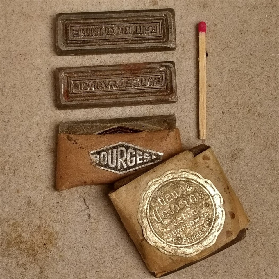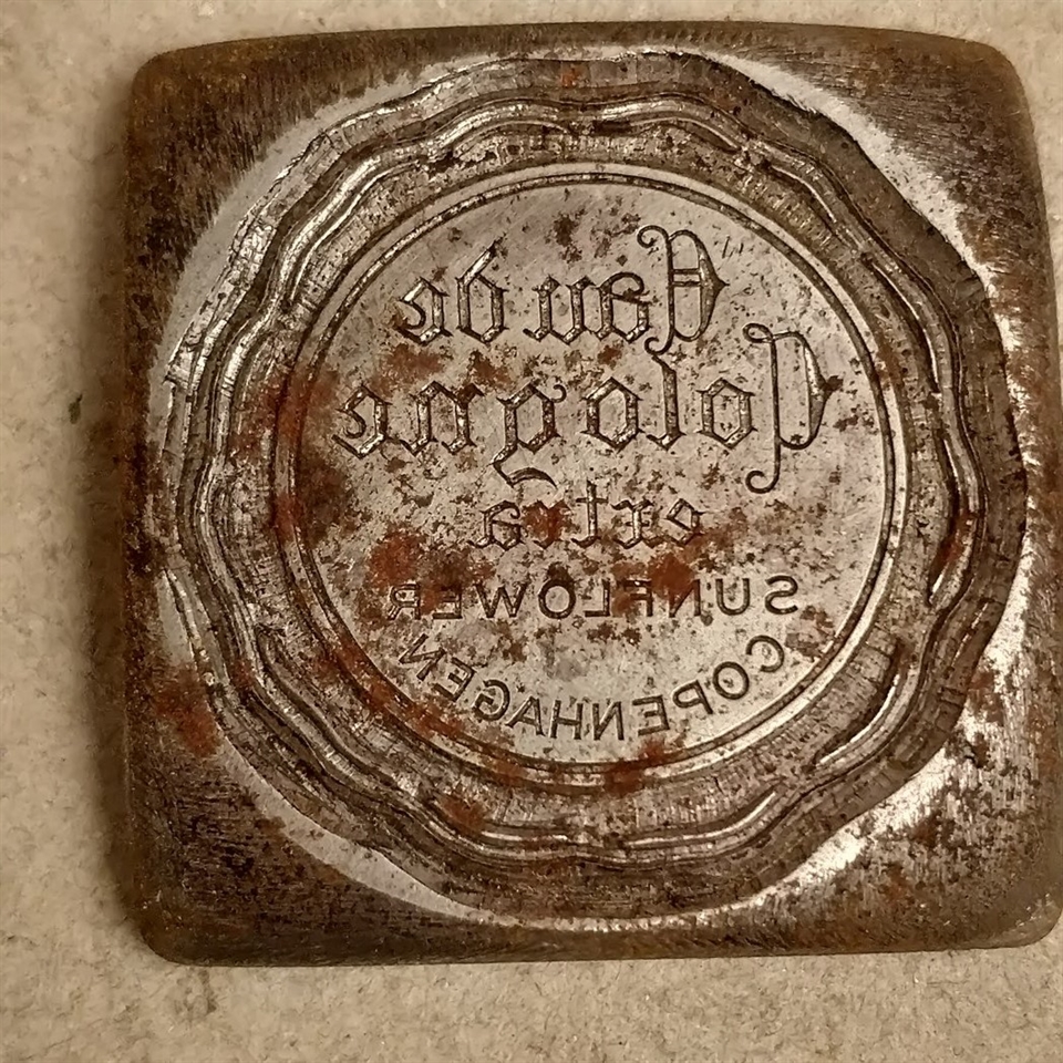 Disse trykplader er ikke blot dekorative elementer, men også bærere af historien om eau de cologne 'Sunflower Copenhagen', et duftikon inden for parfumeri.
