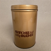 Denne iøjnefaldende metaldåse kommer i en legende palet af gylden, brun og rød, perfekt til at tilføje et pift af nostalgi til din daglige rutine. Med teksten "stor køb, billig køb".