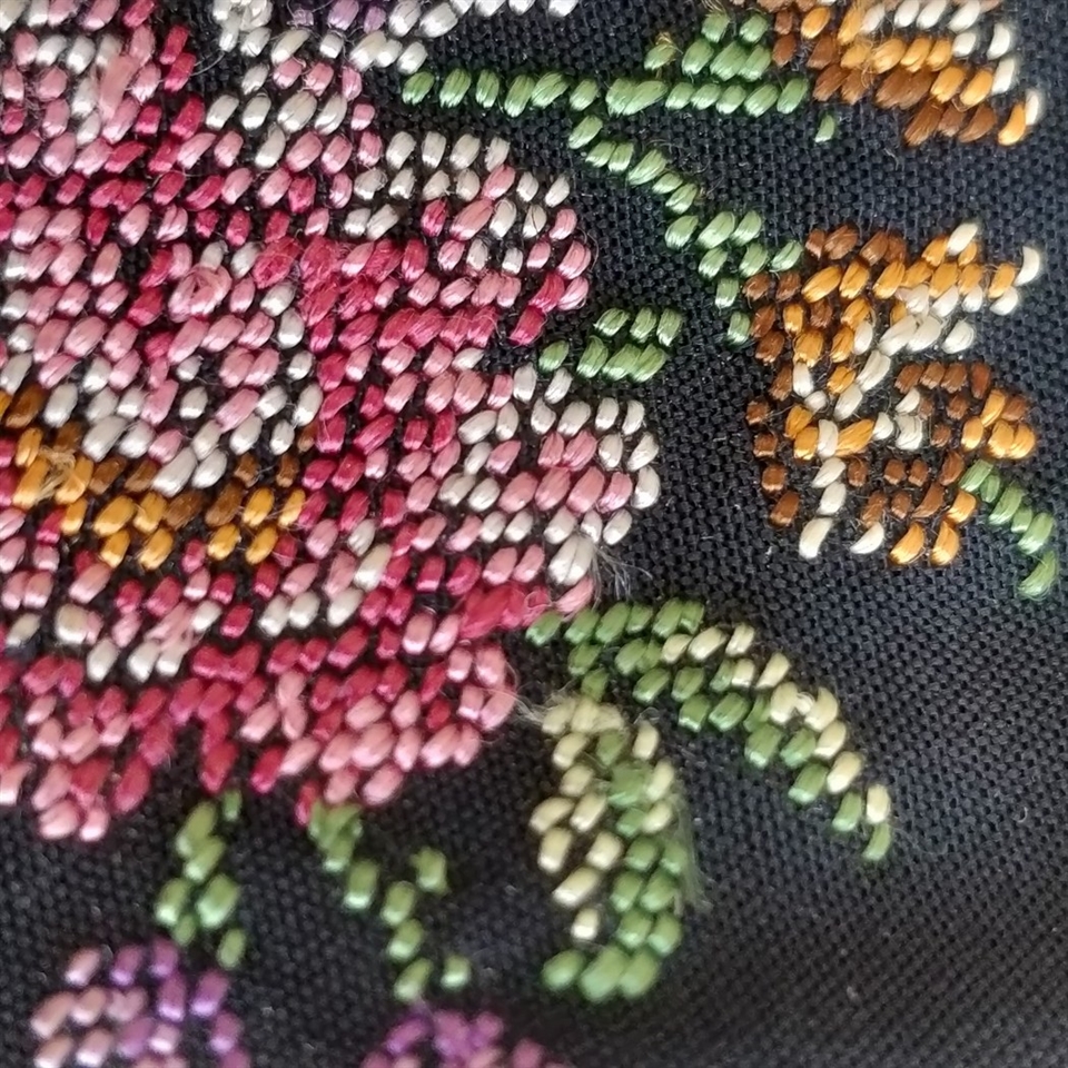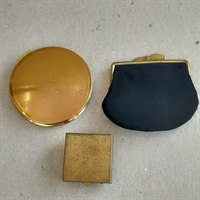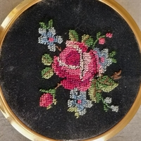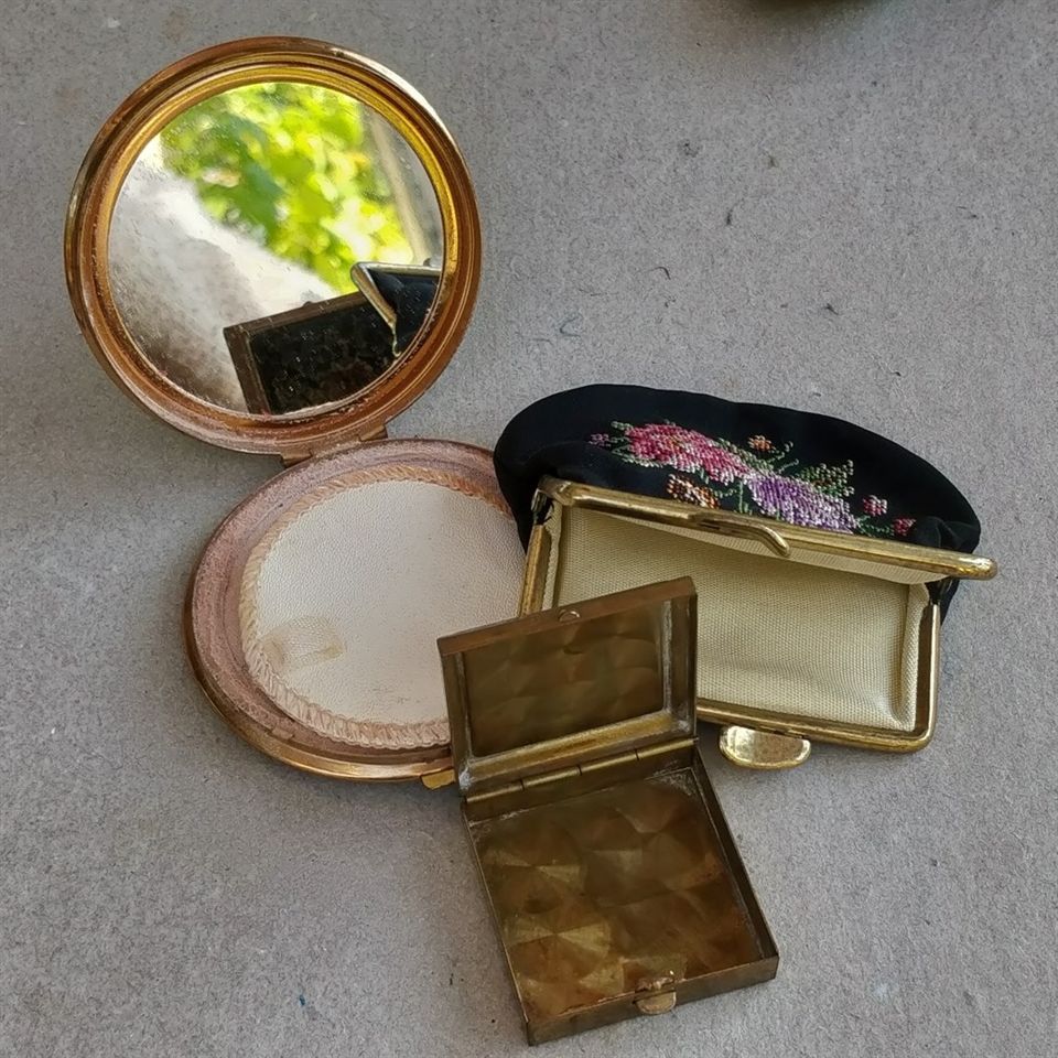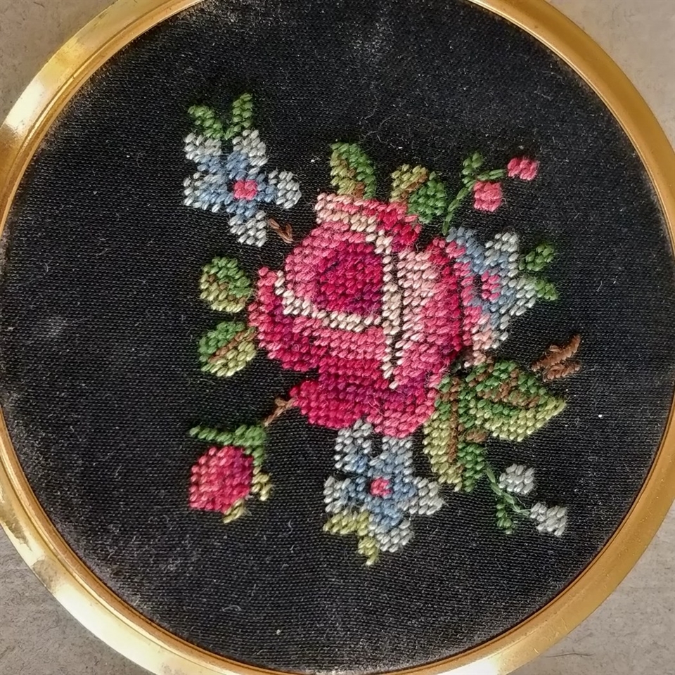 Opdag charmen ved vintage tilbehør med vores eksklusive sæt bestående af en pung, en pudderdåse og en pilleæske, alle dekoreret med delikat rosen petit point.