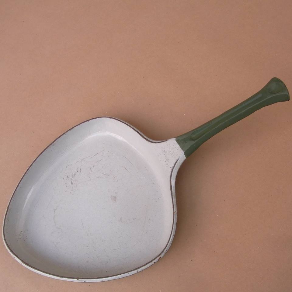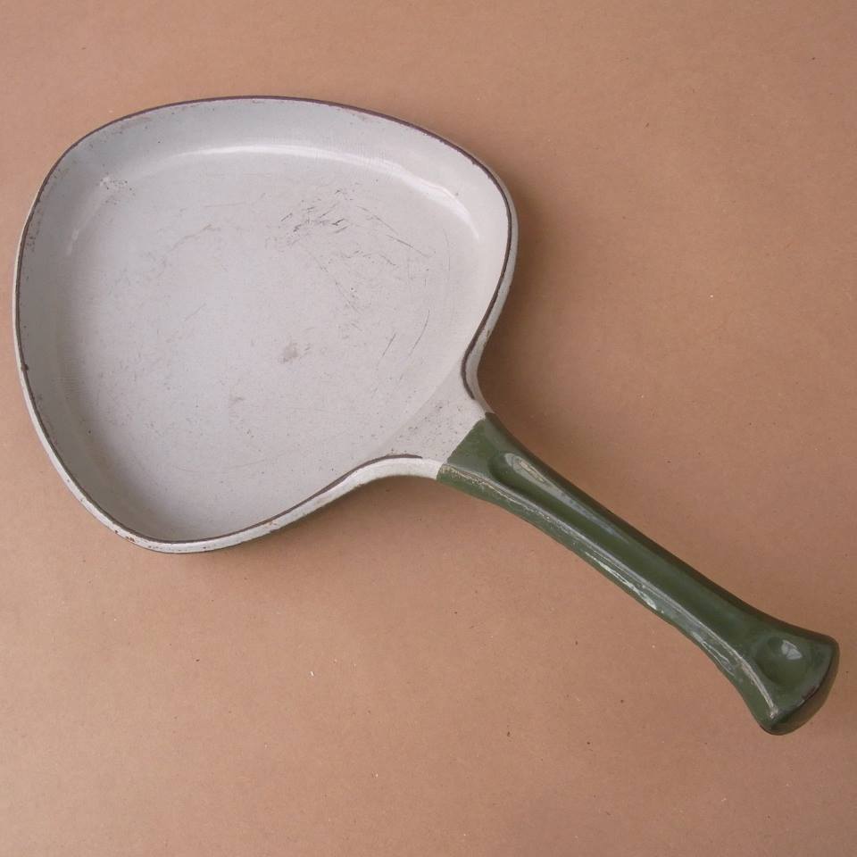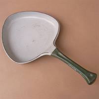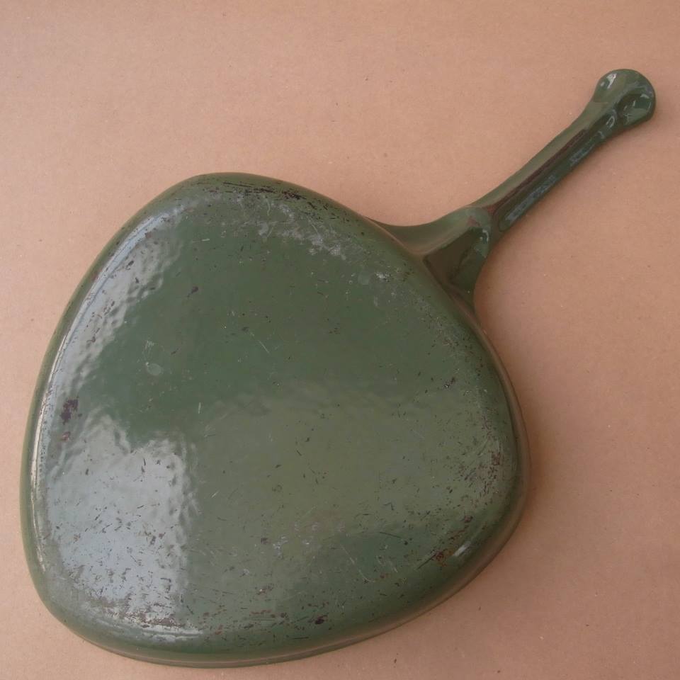 Quistgaard støbejerns hjerte pande. Grøn, hvid emalje.