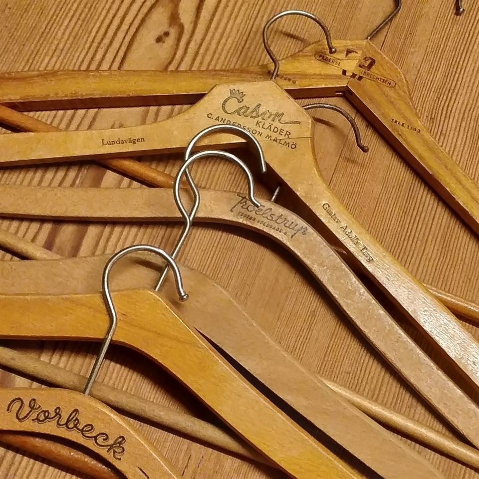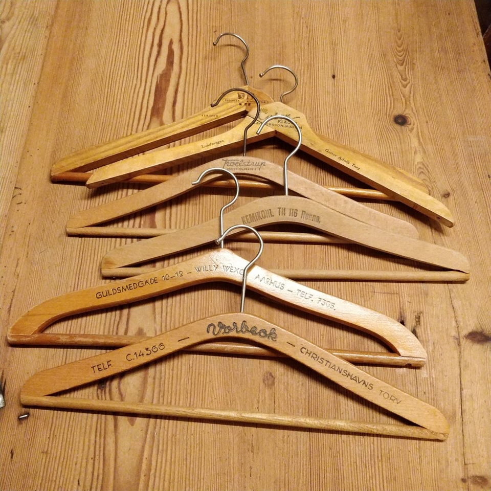 Opdag charmen ved fortiden med vores 'Reklamebøjler' – en unik samling af gamle træbøjler prydet med nostalgiske reklametryk!