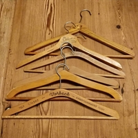 Gør plads i dit hjem eller din butik for disse charmerende træbøjler med et twist af historie – vælg 'Reklamebøjler' og tilføj et unikt pust til din opbevaring!