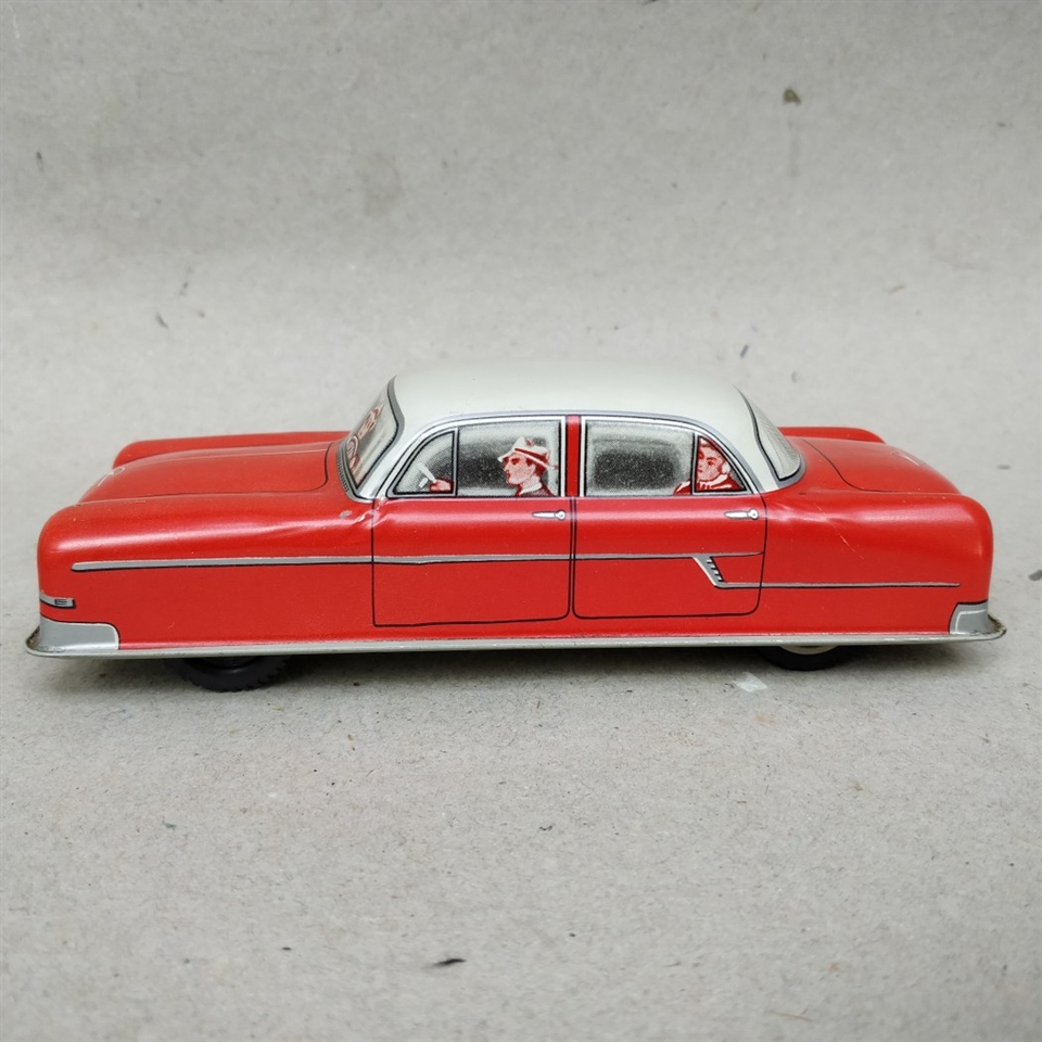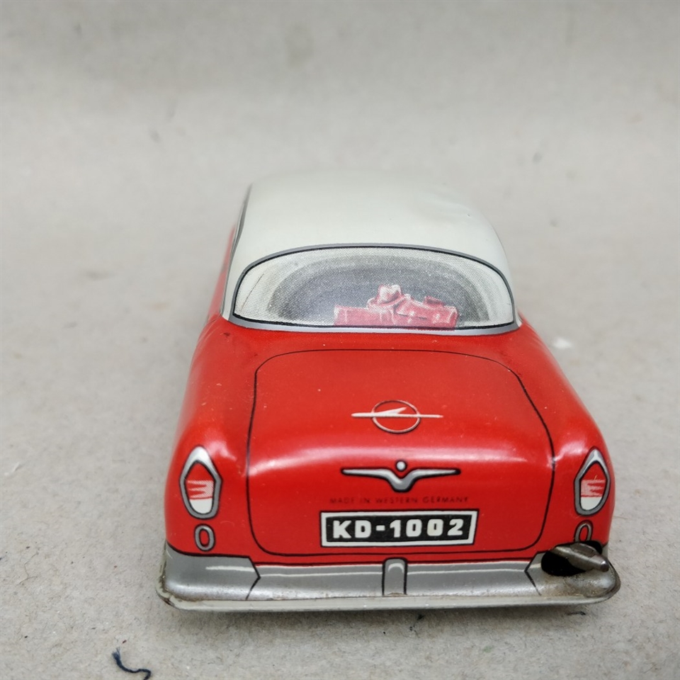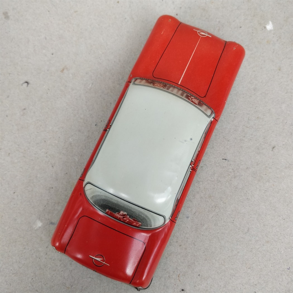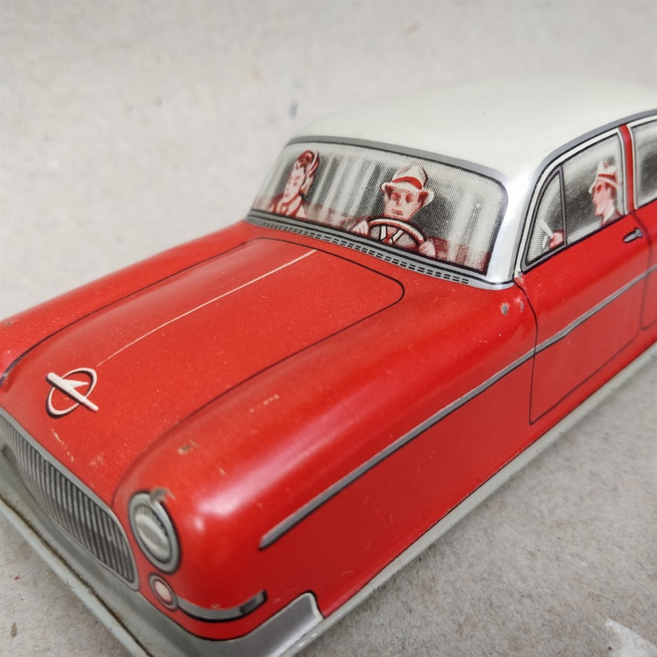 Opdag charmen ved historisk legetøj med denne autentiske røde blikbil, fremstillet i Vesttyskland.