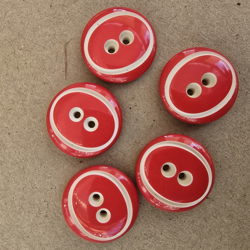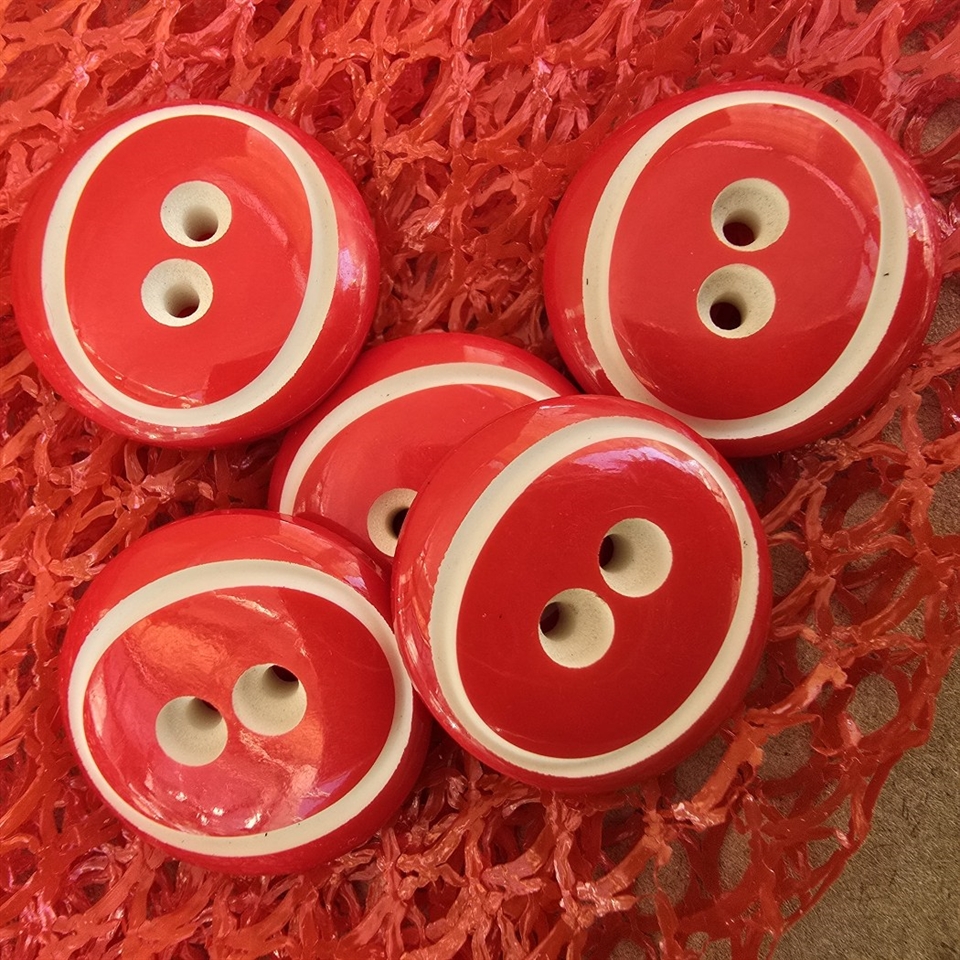 Opgrader dit håndarbejde med et strejf af vintage charme med vores sæt af 5 'Rød, hvide retro plastik knapper'.