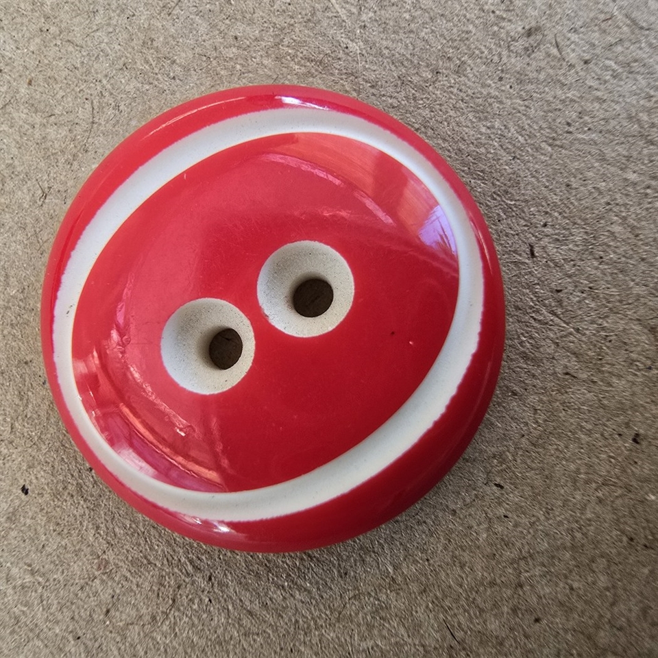 Hver knap måler 21 mm. i diameter og fremviser en iøjnefaldende oval stribet design, hvor røde og hvide farver smelter sammen i en harmonisk retro stil.