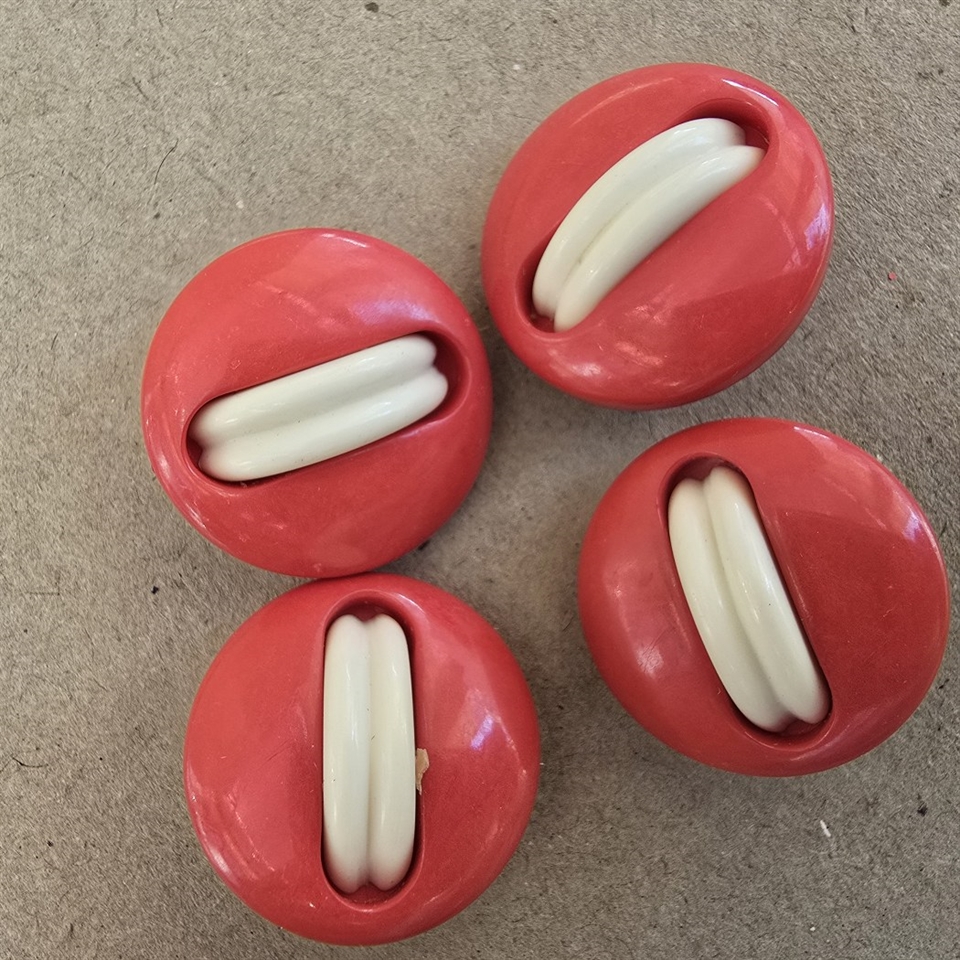 Designet med en iøjnefaldende rød farve og to elegante hvide striber i midten, giver disse knapper et klassisk, men alligevel iøjnefaldende look.