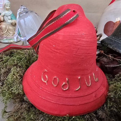 Opdag charmen ved en klassisk jul med vores "Rød Keramik Juleklokke, "God Jul".