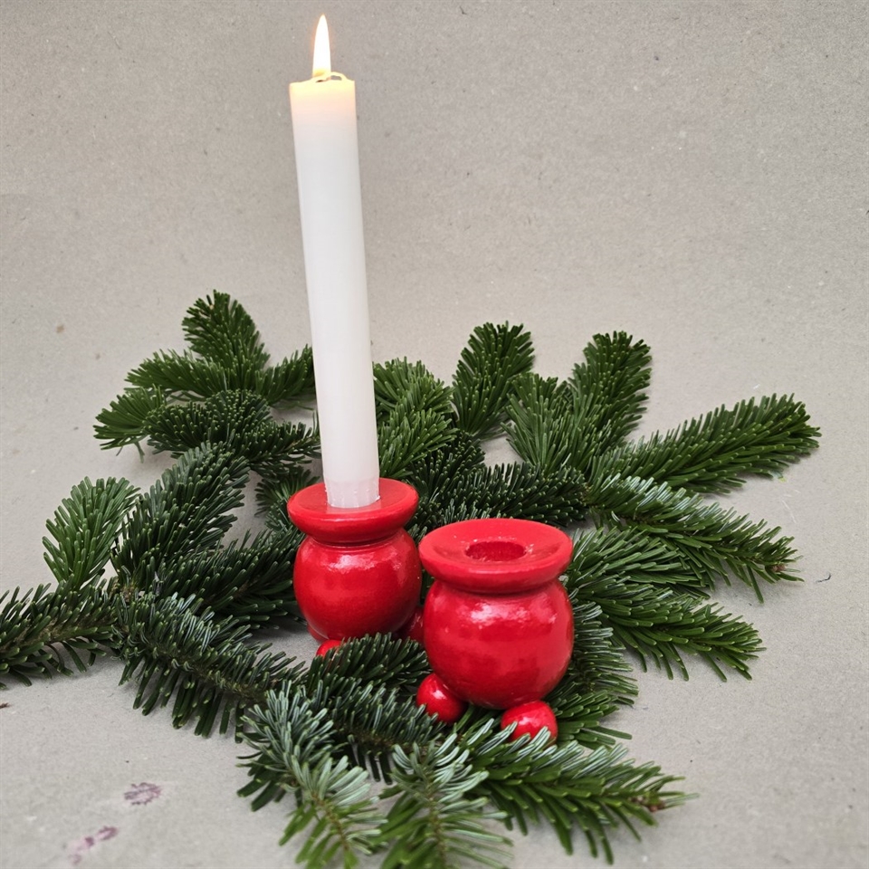 Med en højde på 6,8 cm. passer de til almindelige størrelses lys, og deres rige røde farve vil uden tvivl tilføje varme og glæde til din festlige indretning.