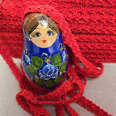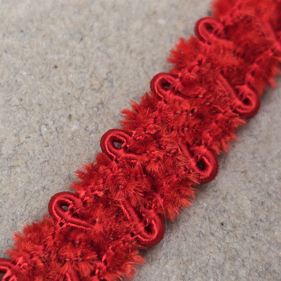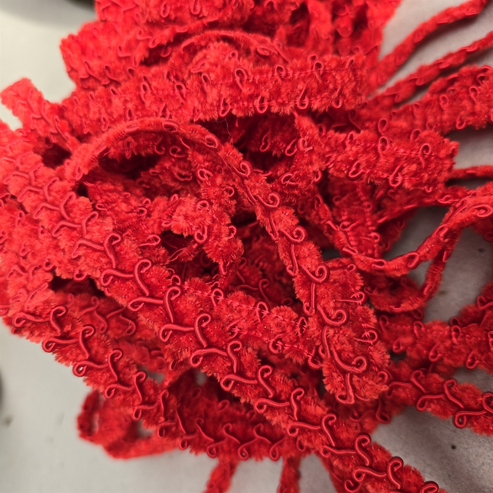 Køb det pr. meter og lad dig inspirere af den italienske finesse og kvalitet, som dette røde possementbånd med velour repræsenterer.
