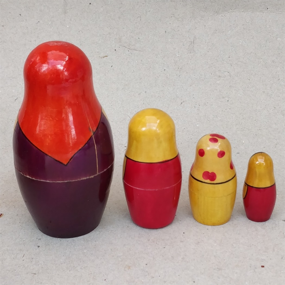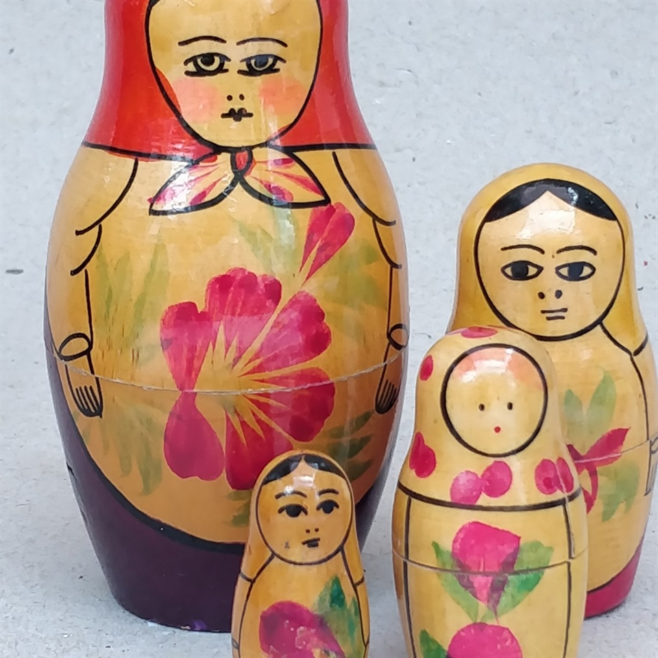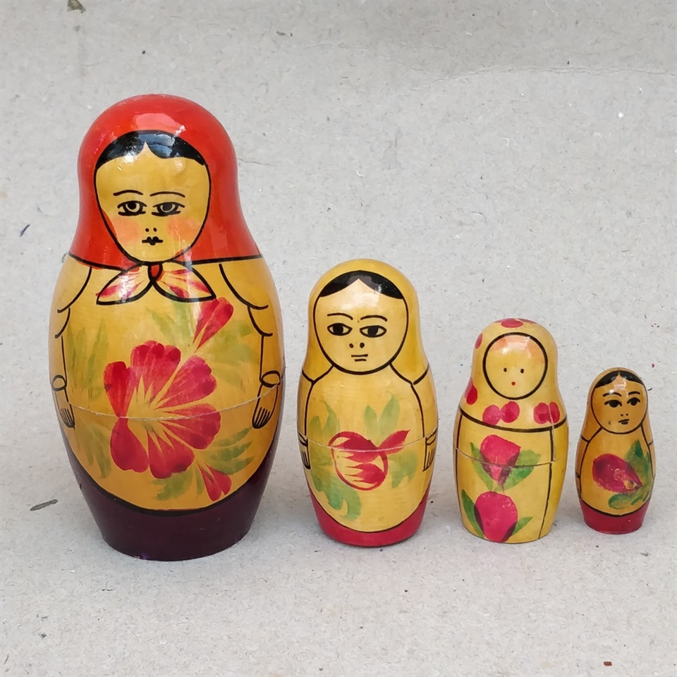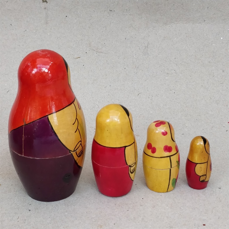 Traditionelle russiske babushka dukker, se dette smukke sæt på 4 stk., klassisk bemalede.