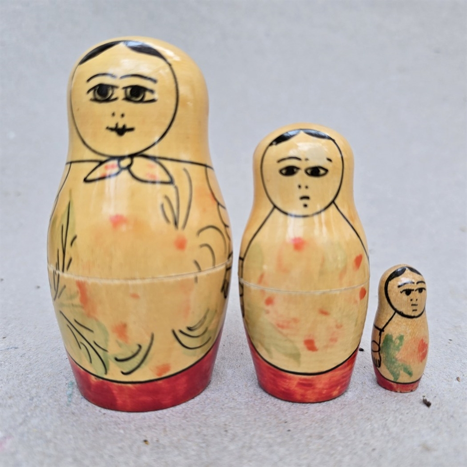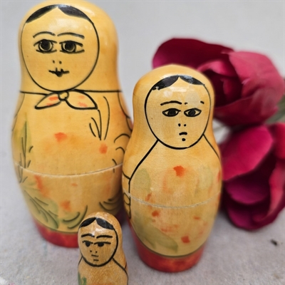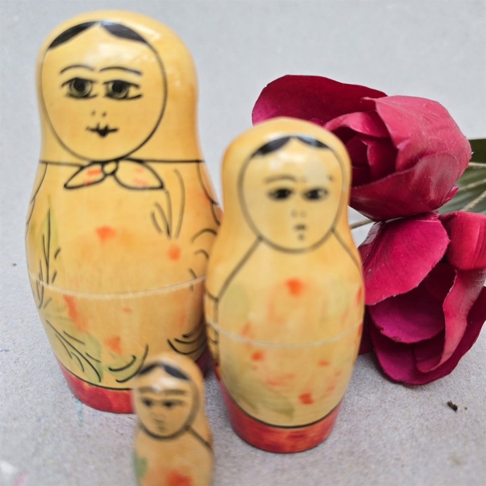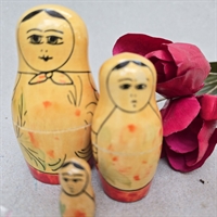 Opdag charmen og historien med vores 'Russiske babushka dukker, klassisk dekorerede gamle trædukker. 3 stk.'