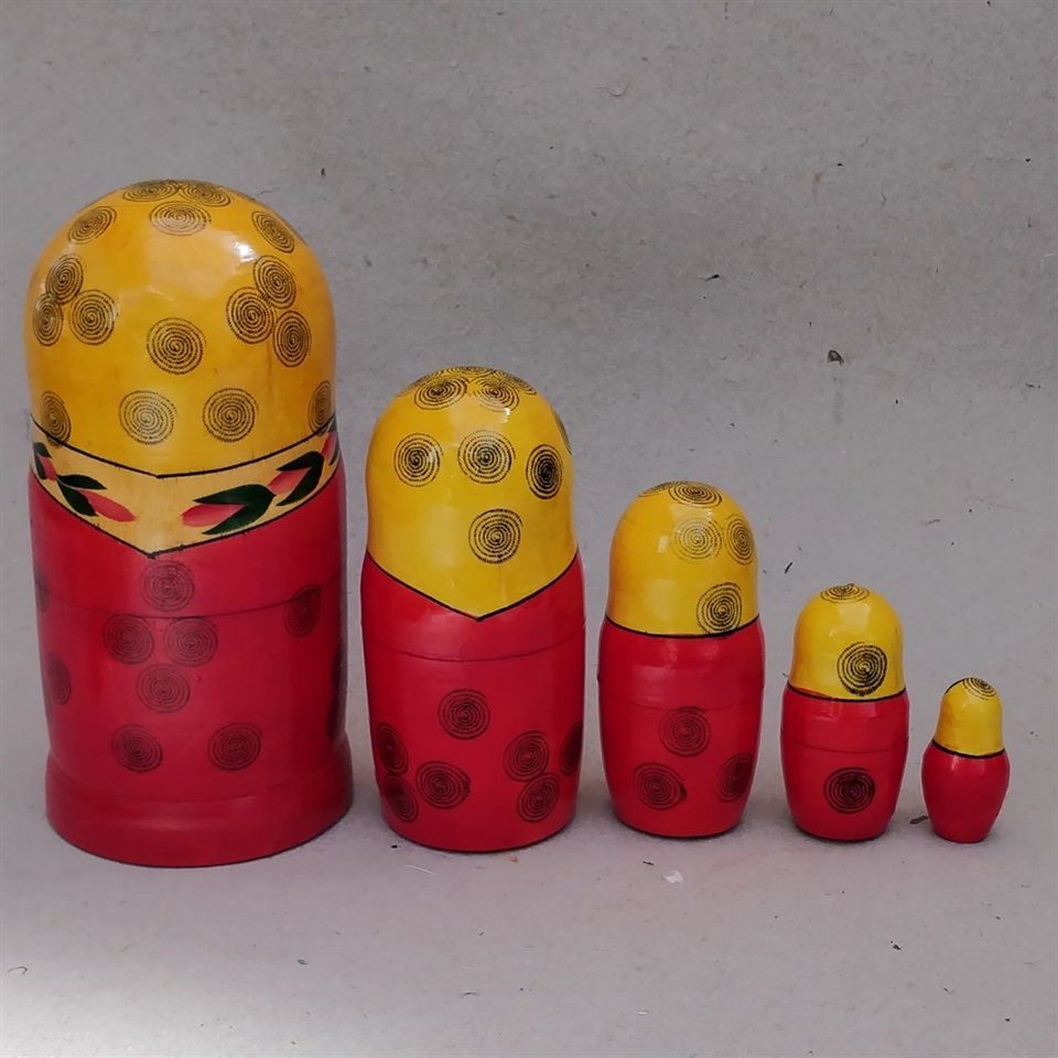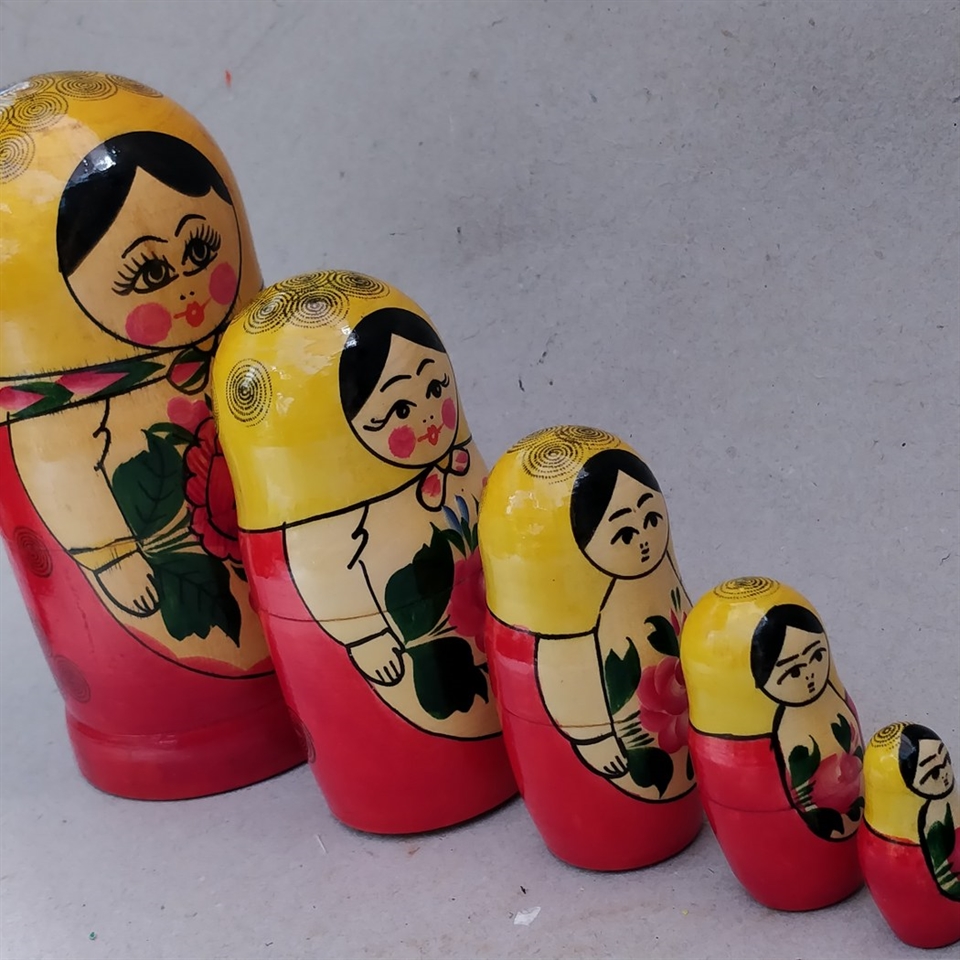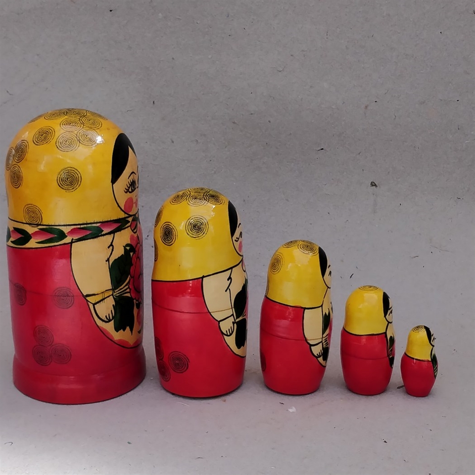 Oplev charmen fra det gamle Rusland med vores "Russiske klassiske babushka dukker, gammelt legetøj. 5 stk." Disse farvestrålende trædukker bringer glæde og nostalgi ind i ethvert rum! Hver dukke er unikt hånddekoreret med glade og levende farver, der fanger øjet og varmer hjertet.