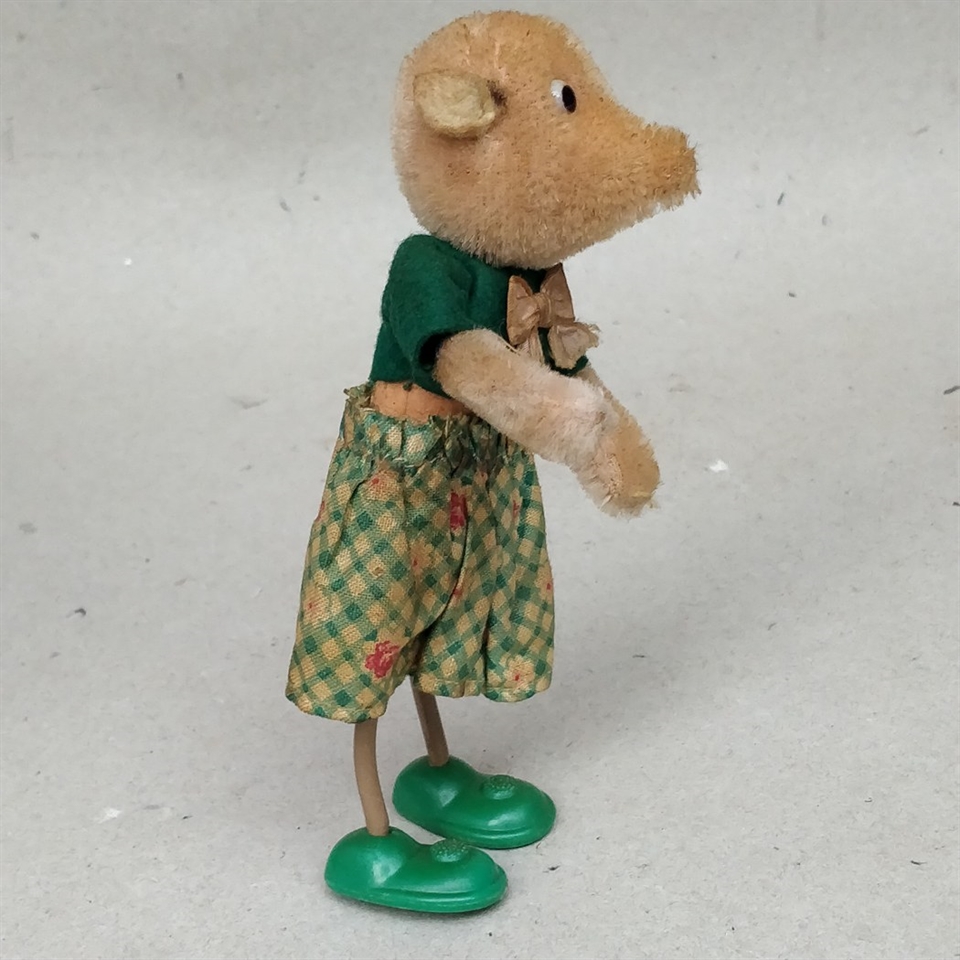 Selv uden nøglen forbliver denne bamse en fremragende repræsentation af historisk håndværk og design, der er værdsat af samlere og entusiaster af mekaniske legetøjer.