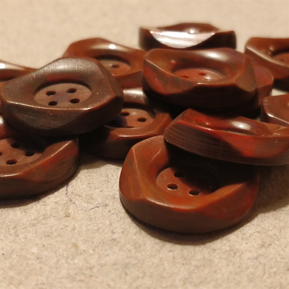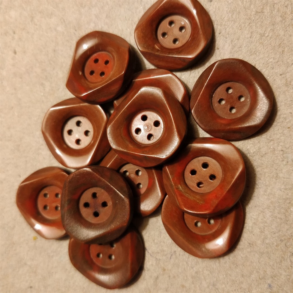 Opgrader dit håndarbejde eller tilføj en retro flair til din garderobe med vores charmerende 'Sekskantede rødbrune retro plastikknapper'.