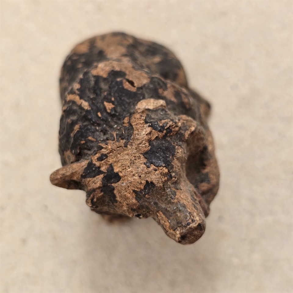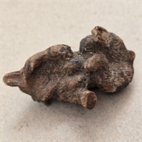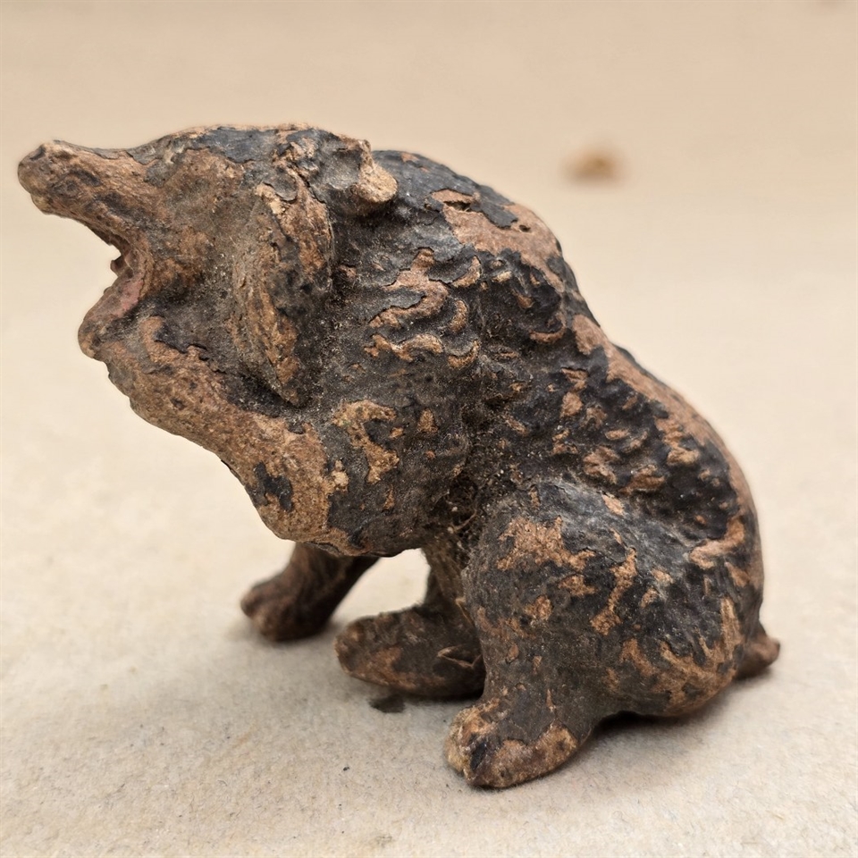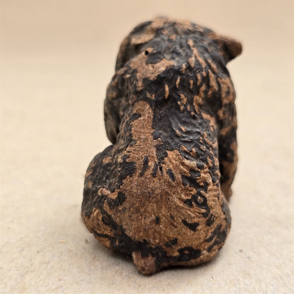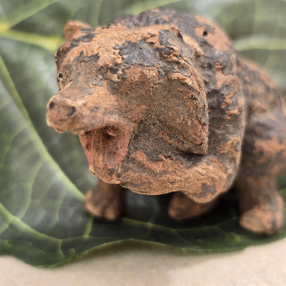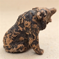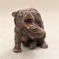 Denne siddende bjørn, der måler 4,8 cm. i højden, er udført i en smuk brun patina, der vidner om dens ægte vintage karakter og mange års kærlig brug.