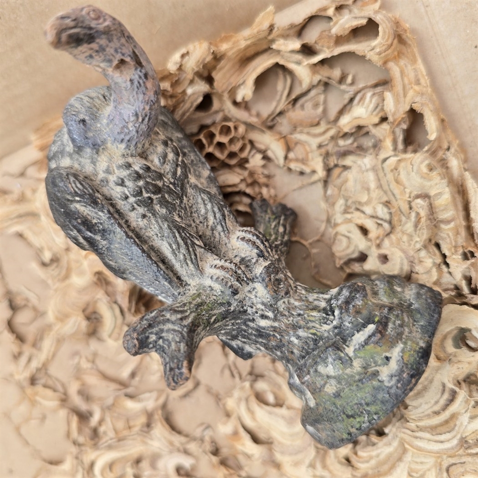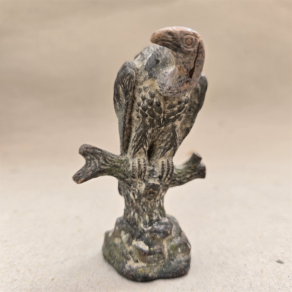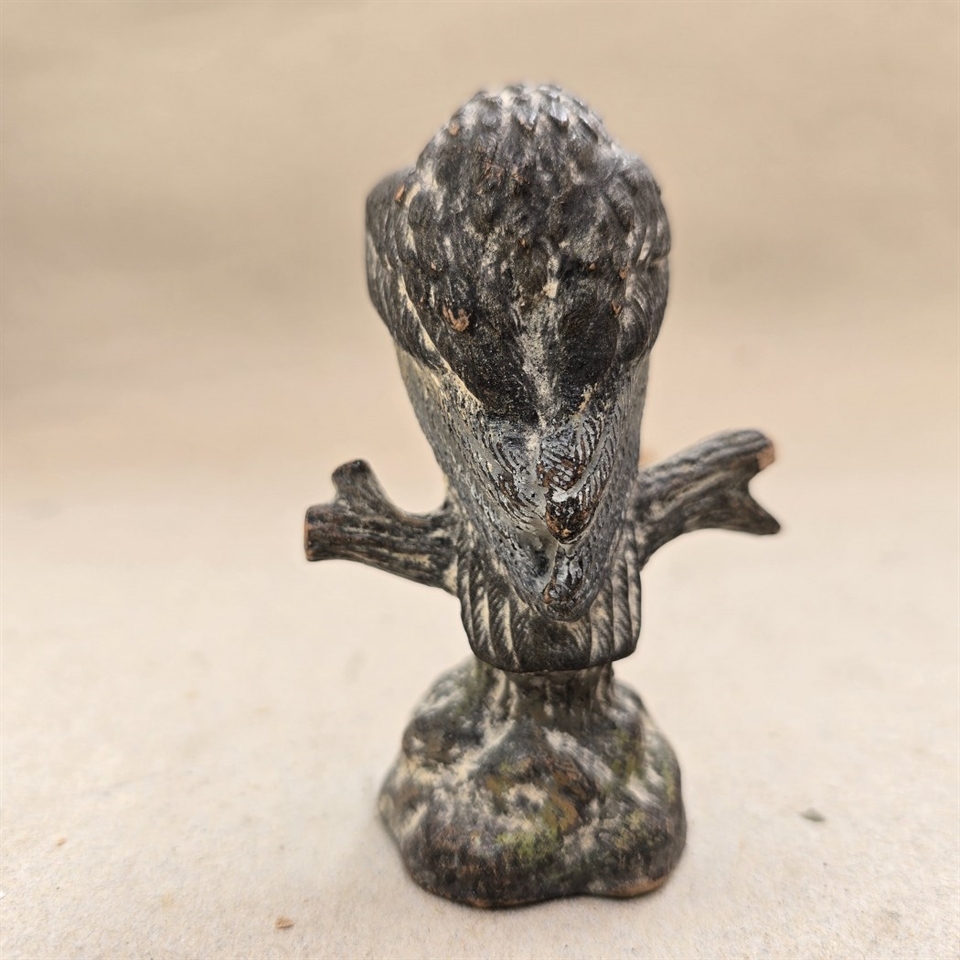 Opdag skønheden og nostalgien med denne charmerende 'Siddende ørn på gren, gammel patineret legetøjsfugl' fra 1930'erne.
