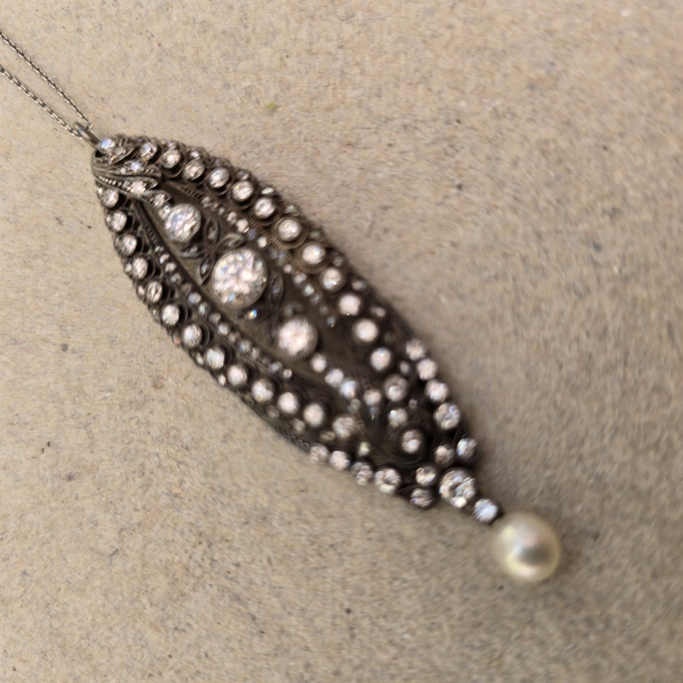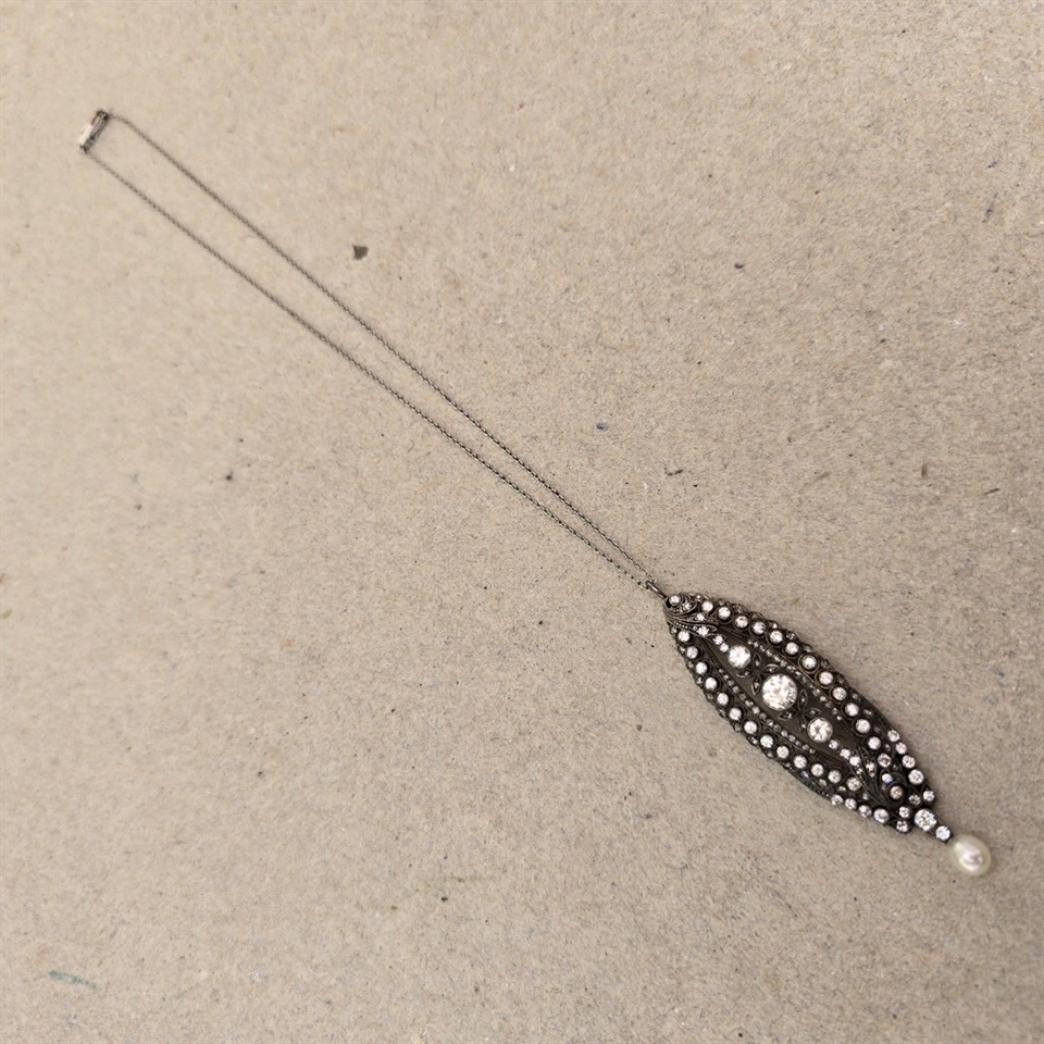 Invester i 'Simili vedhæng med perle i bunden, i kæde, vintage halskæde' og bær et stykke historie, der aldrig vil gå af mode. Dette mesterværk er ikke kun et smykke, men en arvestykke, der kan gå i arv gennem generationer.