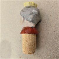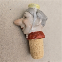 Vores skønne skænkeprop er fremstillet af porcelæn og forestiller en bedårende gammel dame med gråt hår, prydet med en livlig lille gul hat, der tilføjer et pop af farve og personlighed. Perfekt til enhver, der værdsætter det unikke og særlige ved serveringstilbehør.