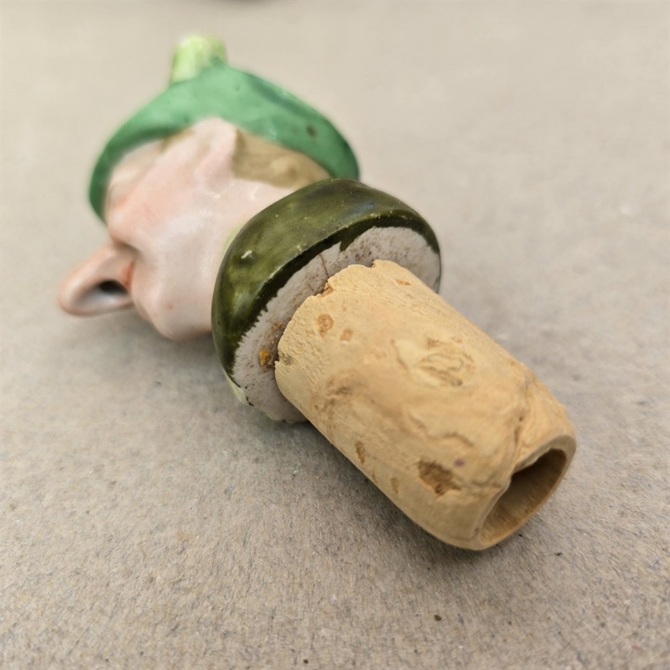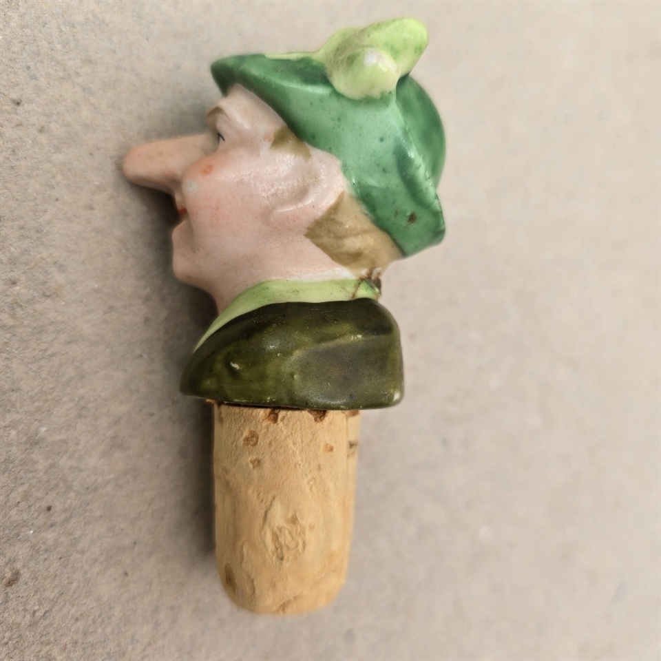 Højde på 8,2 cm. Skænkeproppen er fremstillet af porcelæn og præsenterer en charmerende jægerklædt i grønt tøj og en grøn hat. Tilføjer et humoristisk og vintage touch til enhver sammenkomst.