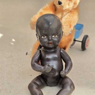 Opdag en skat fra fortiden med vores charmerende Skildpadde dukke! Denne unikke, mørkhudede vintage plastikdukke er et sandt fund for enhver samler eller som en nostalgisk gave. Fra den detaljerede, livagtige udformning til dens historiske charme, hver eneste 16 cm lange dukke fortæller sin egen unikke historie.