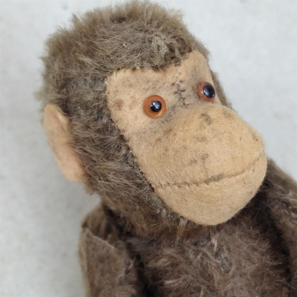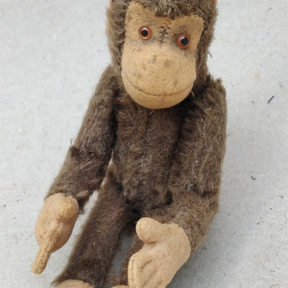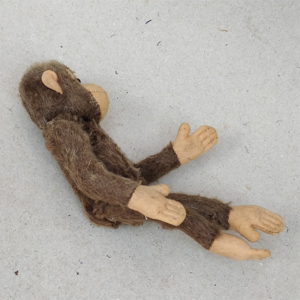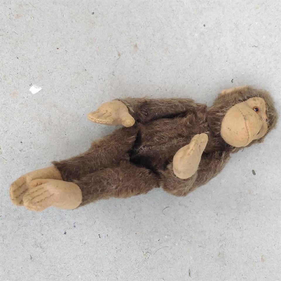 Tilføj denne skønne gamle brun abekat med lange lemmer til din samling og nyd et stykke legetøjshistorie, der fortsat vil glæde og inspirere.
