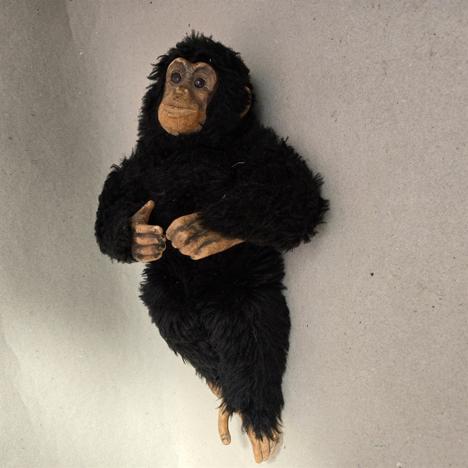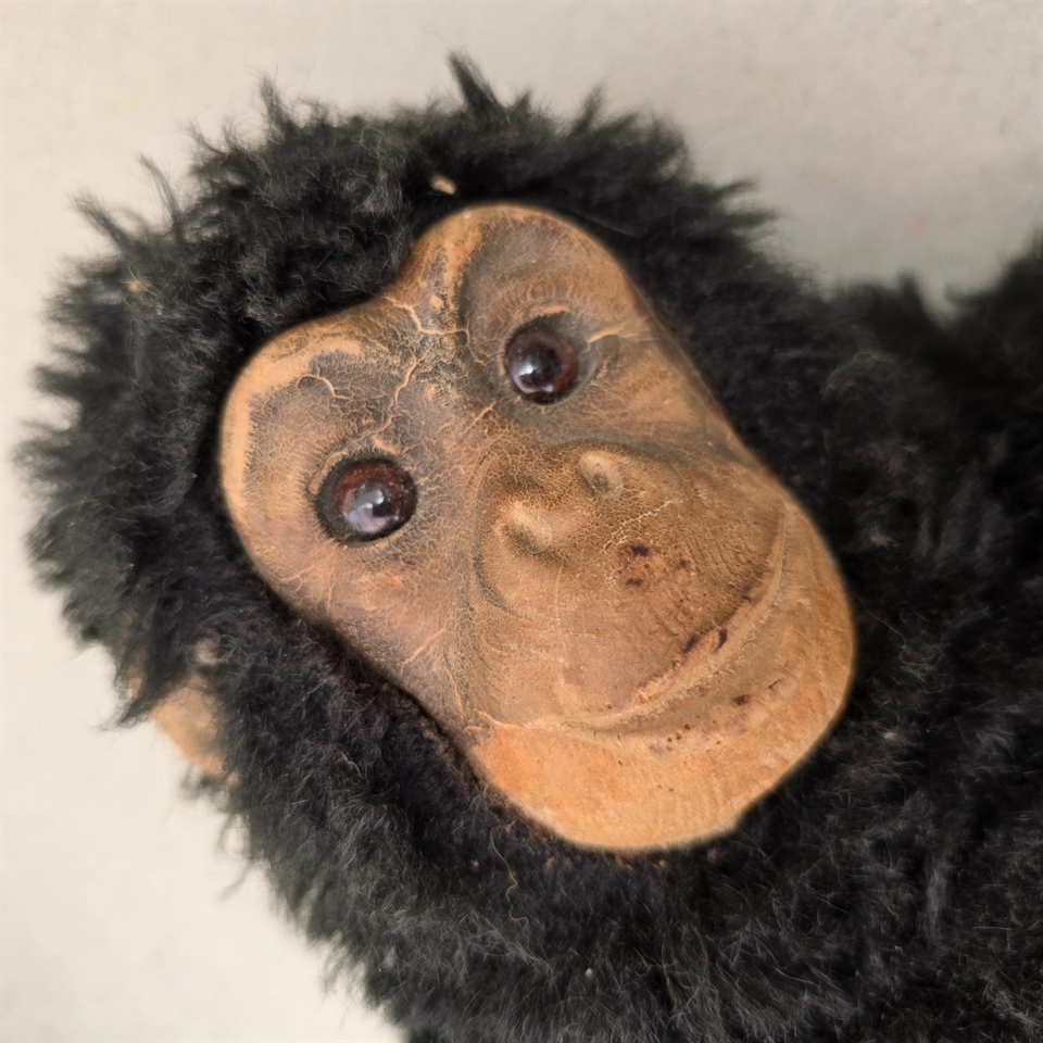 "Skønneste gamle krammeabe i langhåret pels" er mere end blot et legetøj; det er et minde om en svunden tid, der bringer varme og glæde til hjerter.