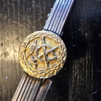 Disse nåle er ikke blot tilbehør, men et symbol på tradition og prestige. Hver nål er omhyggeligt udformet i holdbart metal og præsenterer et imponerende frimurerlogo prydet med tre majestætiske blå stjerner, der tilføjer et strejf af mystik og raffinement til dit ensemble.