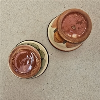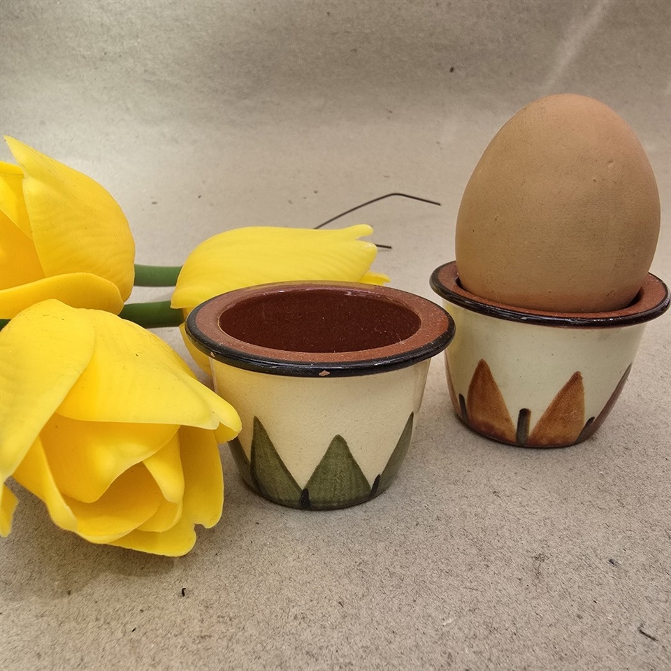 Giv dit morgenbord et strejf af nostalgi med disse charmerende små retro æggebægre! Sættet består af to æggeholdere, hver med en unik og indbydende farvepalette i brun, beige og grøn.