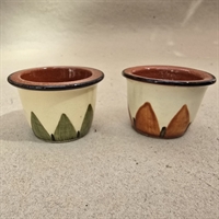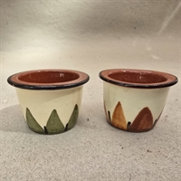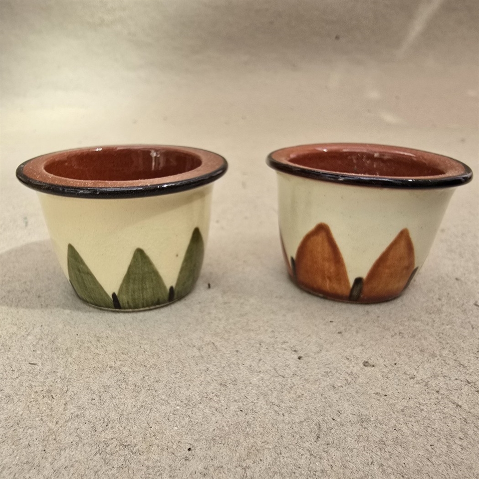 Disse æggebægre er ikke blot praktiske; de er små kunstværker, fremstillet i keramik med en smukt takket dekoration, der tilføjer et vintage touch til enhver morgenmadsoplevelse.