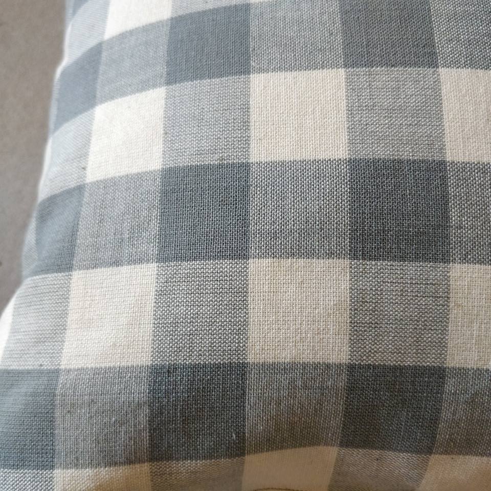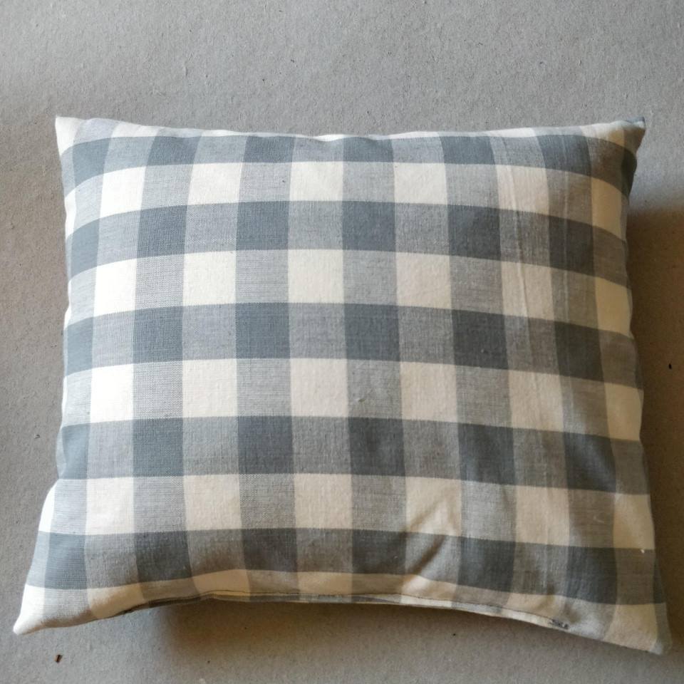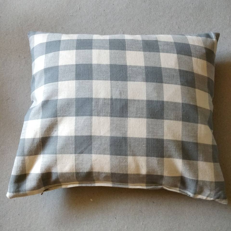 Grå og creme ternet pude, bomuld.