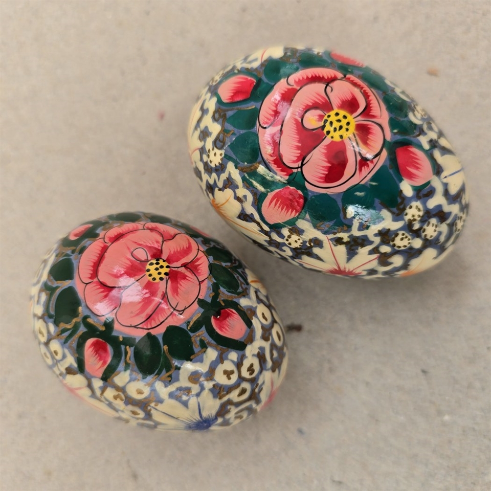 Opdag charmen ved påsken med vores 'Smukke blomster bemalede træ æg' - perfekt til at tilføre et strejf af retro elegance til din påskepynt. Dette sæt består af to håndmalede trææg, hver dekoreret med fine lyserøde blomster, der vil tilføre forårets skønhed til ethvert rum.