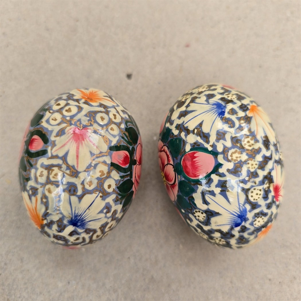 Hvert æg måler imponerende 7 cm. i højden, ideelt til at fange øjet, uanset om de placeres på dit påskebord eller som en del af en festlig udsmykning rundt omkring i hjemmet. Fremstillet af træ, disse æg kan blive en tilbagevendende del af dine påsketraditioner år efter år.