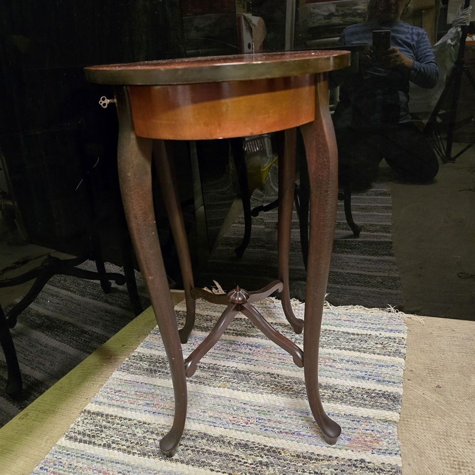 Oplev charmen og historien med dette smukke, gamle sybord, der er et sandt mesterværk til dit hjem!