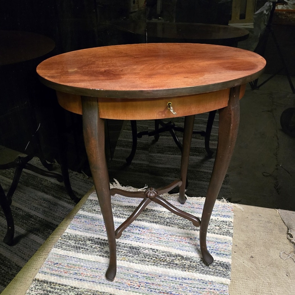 Med sin elegante, ovale form og sirligt svungne ben, tilføjer dette bord en tidløs elegance til ethvert rum.