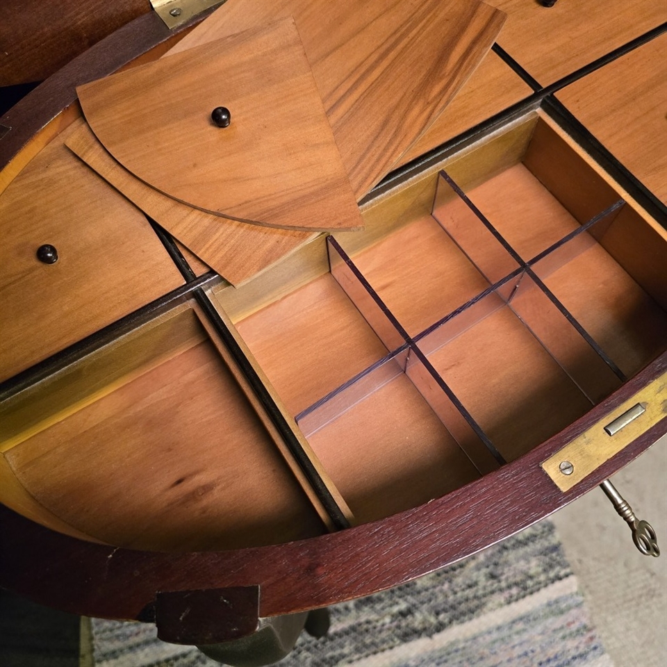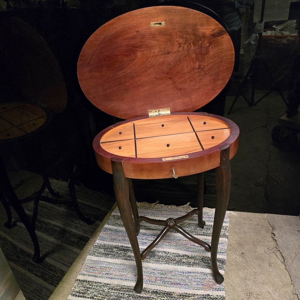 Det unikke ved dette sybord er dets fine inddeling i små rum, der gør det ideelt til opbevaring af sy- og håndarbejds udstyr. Rumdelingen hjælper med at holde orden i dine nåle, tråde, knapper og andre småting, så du altid har det, du behøver, lige ved hånden.