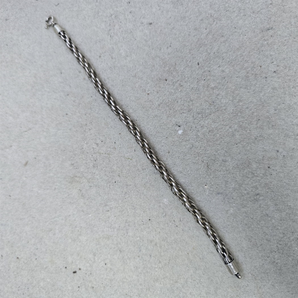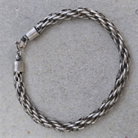 Opdag skønheden i genbrugte skatte med dette snoede, sølvfarvede vintage armbånd.