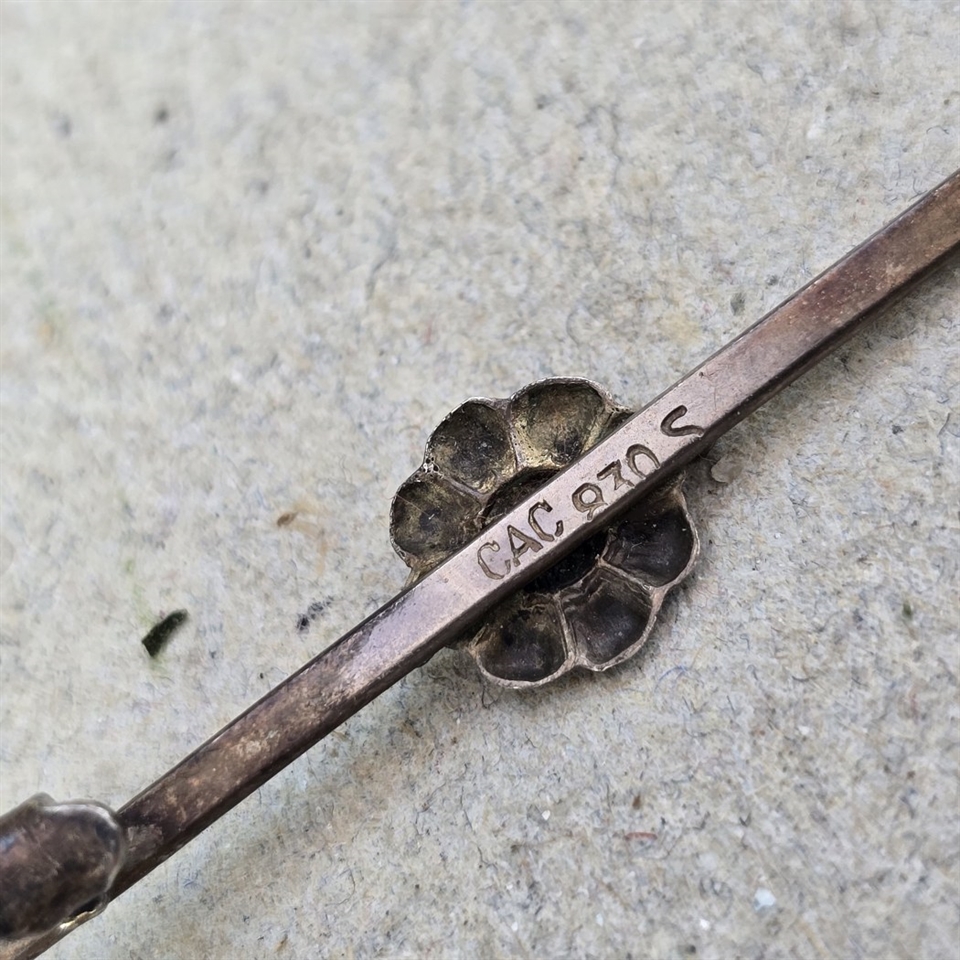 Hver broche er præget med det distingverede stempel 'CAC', et vidnesbyrd om autenticitet og håndværksmæssig ekspertise. Midt på brochen pryder en elegant blomst, mesterligt indarbejdet i designet, der stråler med en vintage æstetik, der både er nostalgisk og tidløs.
