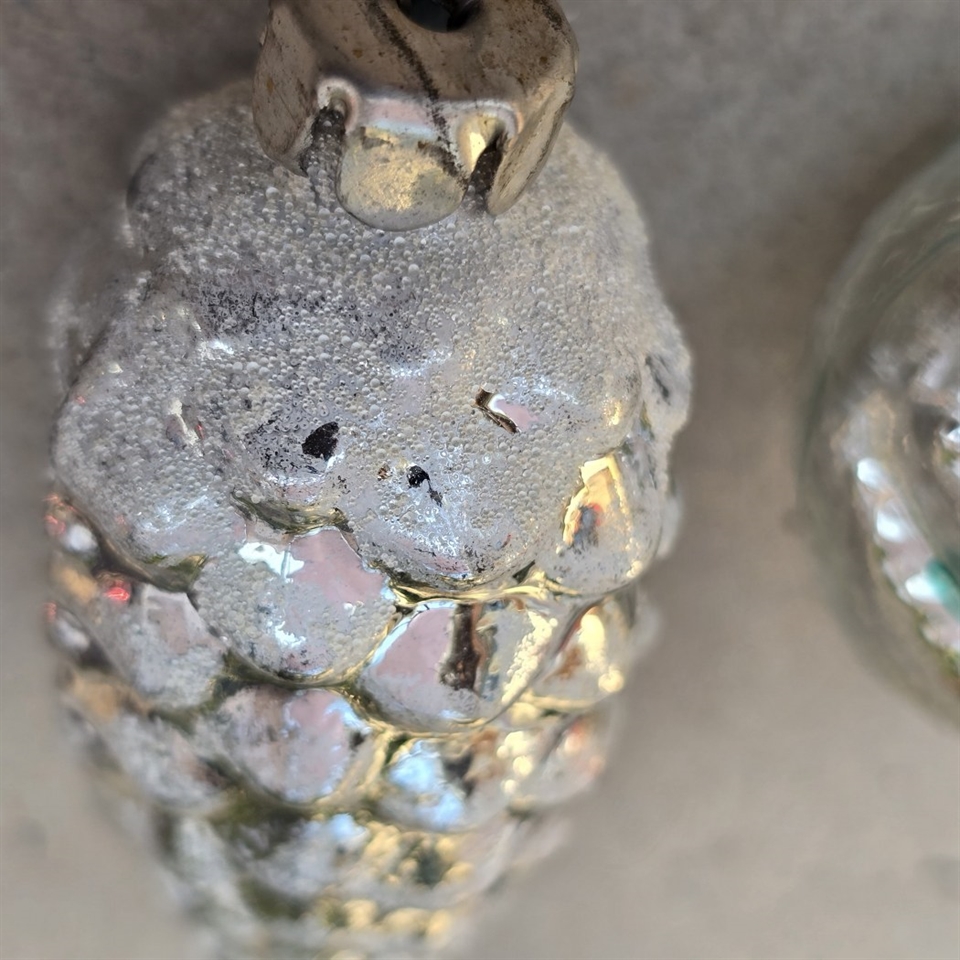 Perfekt som en tankevækkende gave til en elsket, eller som en tilføjelse til din egen julesamling, vil disse sølvfarvede gamle glas julekugler helt sikkert blive en værdsat del af dine juletraditioner år efter år.