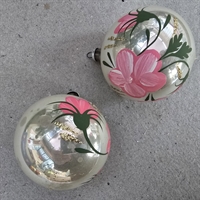 Dette sæt består af to betagende julekugler, hver omhyggeligt dekoreret med delikate rosa blomster og grønne blade, der kontrasterer smukt mod den skinnende sølvfarvede baggrund. Perfekt til at tilføje en unik og personlig touch til din juleudsmykning!