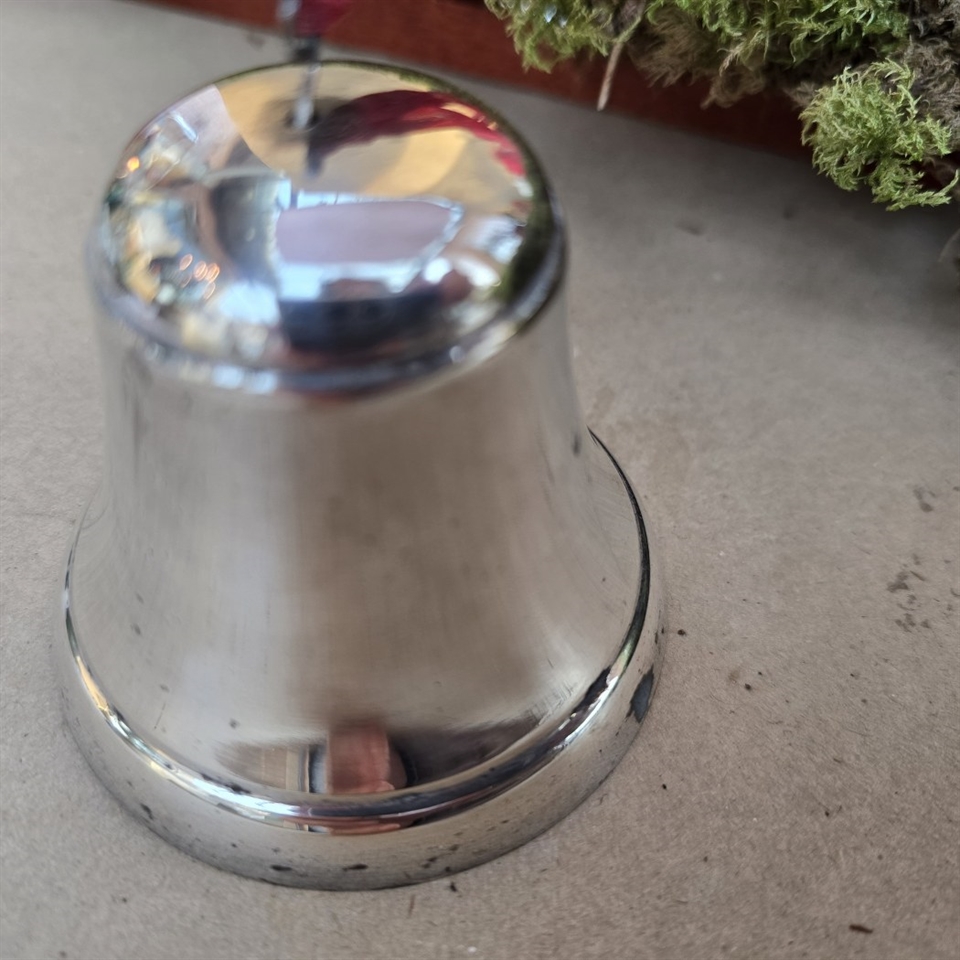 Opdag charmen af julen som i gamle dage med denne sølvfarvede vintage metal juleklokke!