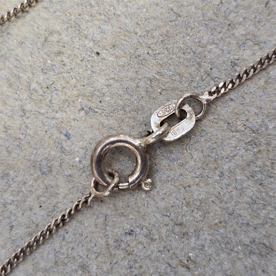 Halskædens fine sølvkæde, der måler 40 cm., er både diskret og forførende og tilbyder en ideel længde, der passer flot på enhver hals.