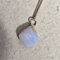 Vedhænget, der er hjertet i dette smykke, er prydet med en betagende lyseblå sten. Denne sten er ikke kun smuk at se på; dens klare, beroligende farve indkapsler en tidløs æstetik, der stråler af ro og elegance. Den lyseblå nuance komplementerer sølvkæden perfekt og tilføjer et strejf af farve, der fanger øjet og fremhæver din ynde.