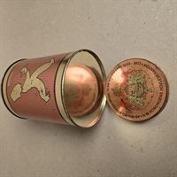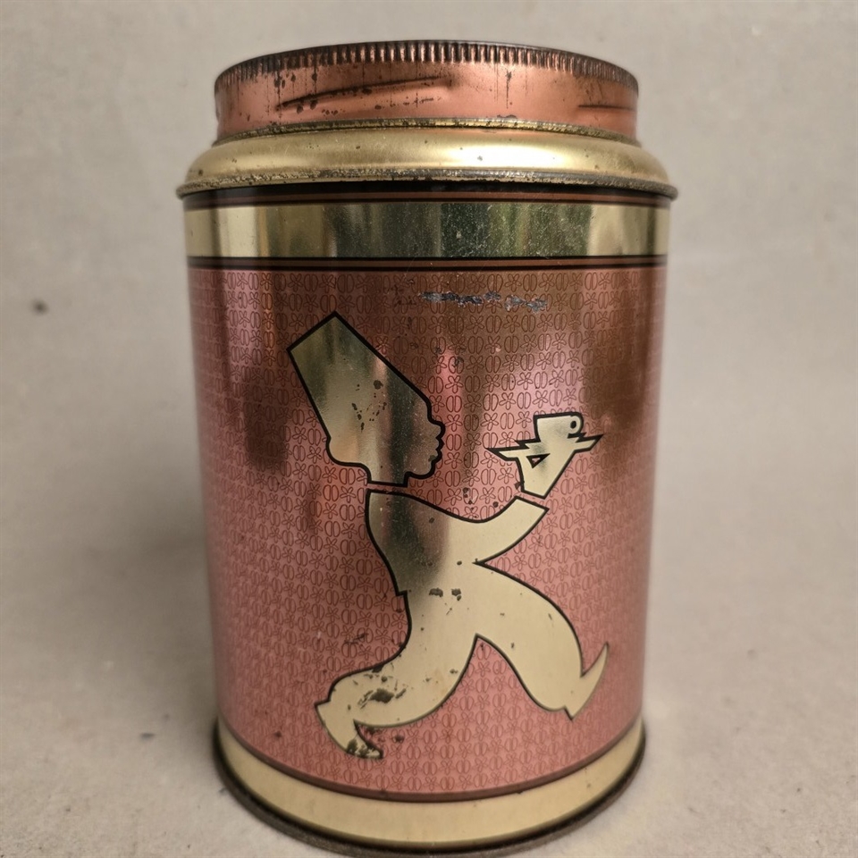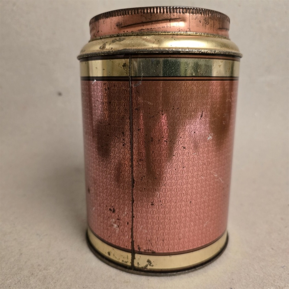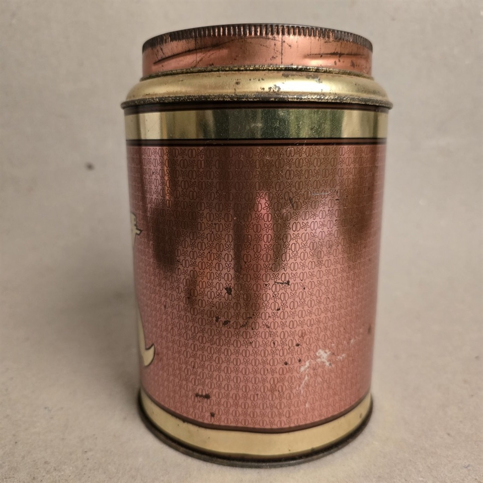 Produktet måler 16 cm. i højden og 11 cm. i diameter, hvilket gør det til en praktisk størrelse for både opbevaring og udstilling. Den runde form og det robuste metal sikrer, at dåsen både er funktionel og holdbar.