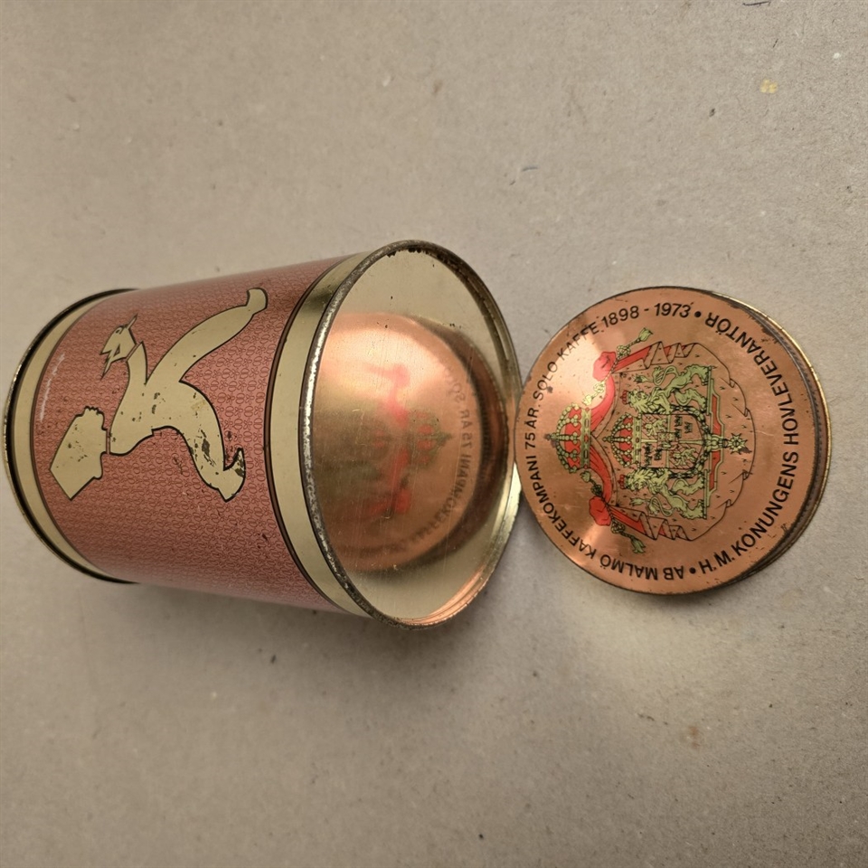 Opdag charmen af vintage stil med "Solo, gammel svensk kaffedåse, AB. Malmö". Denne autentiske og dekorative kaffedåse tilføjer et strejf af retro til ethvert køkken eller samlingsdisplay.