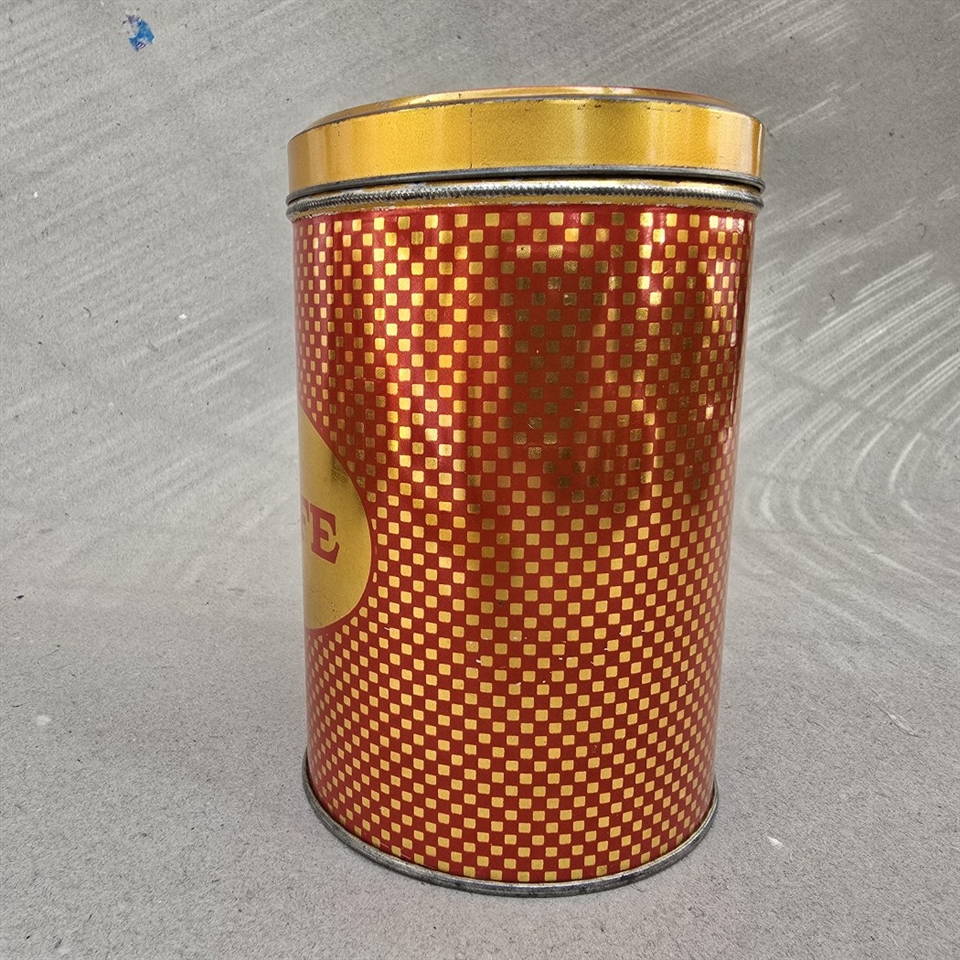 Fremstillet af metal og omhyggeligt designet med en fortryllende kombination af guld og rød, denne kaffedåse er et sandt mesterværk.
