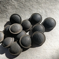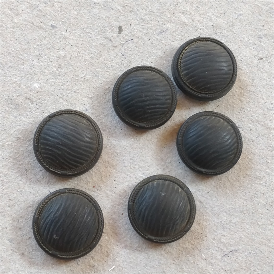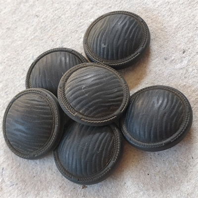 Produktdetaljer: - Produkt: Sort bølgemønsteret retro knap - Antal: 6 stk. - Materiale: Plastik - Farve: Sort - Diameter: 22 mm - Oprindelse: Frankrig