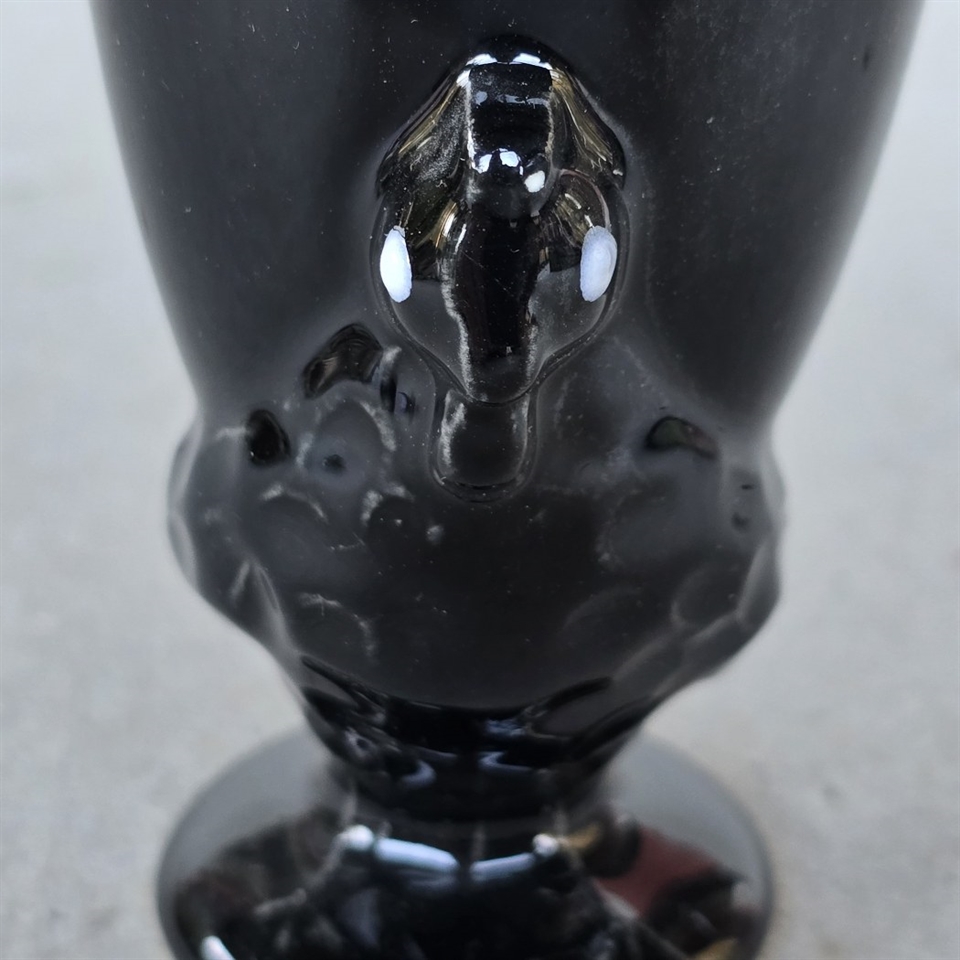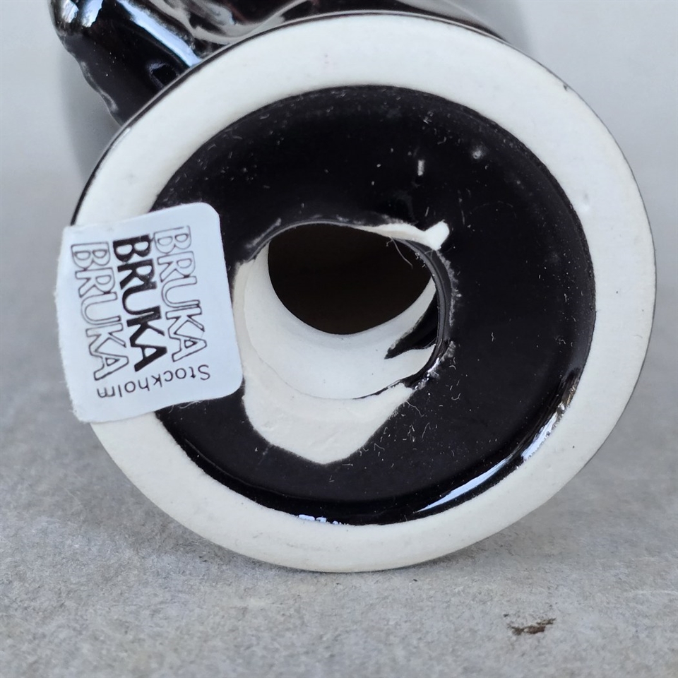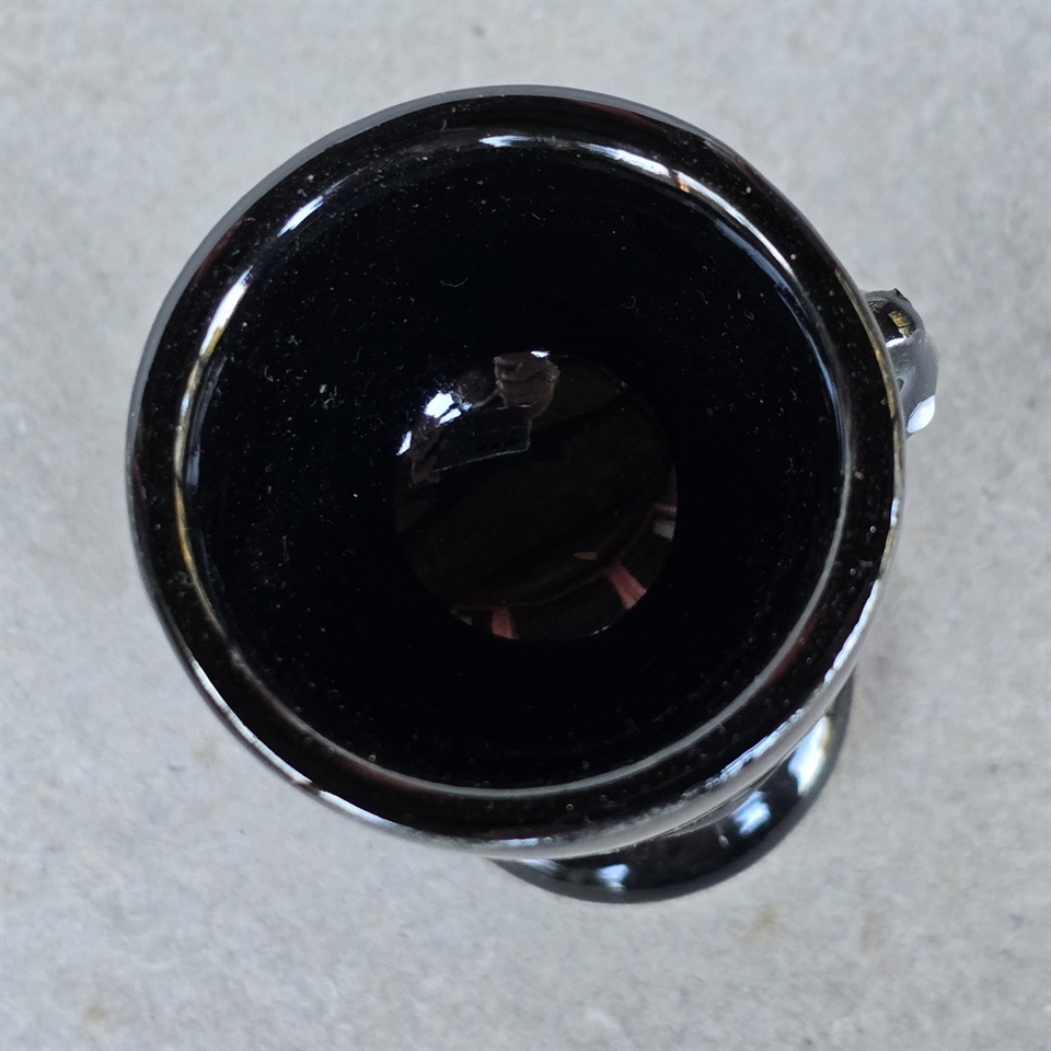 Produktet måler 8,4 cm. i højden og fremstår med en smuk, sort glasur, der giver en glat og glansfuld overflade.