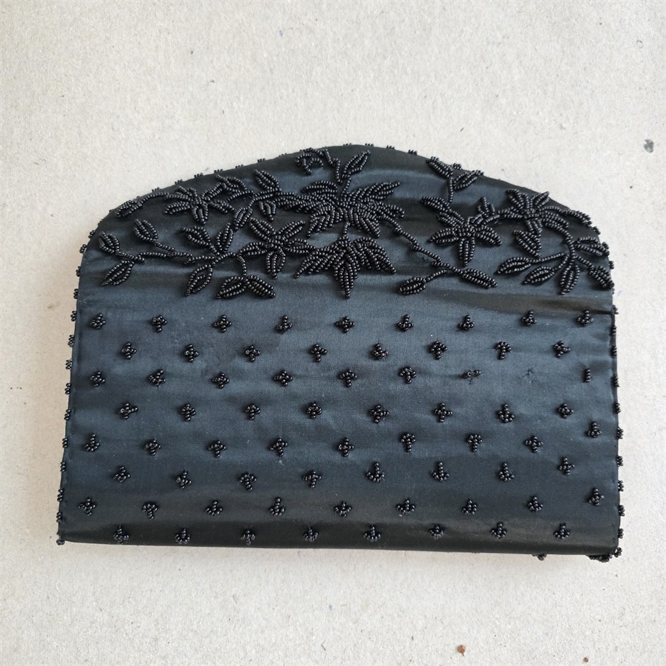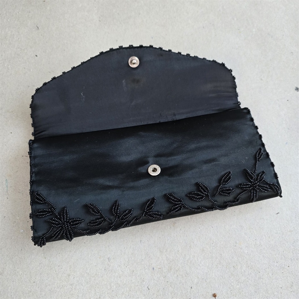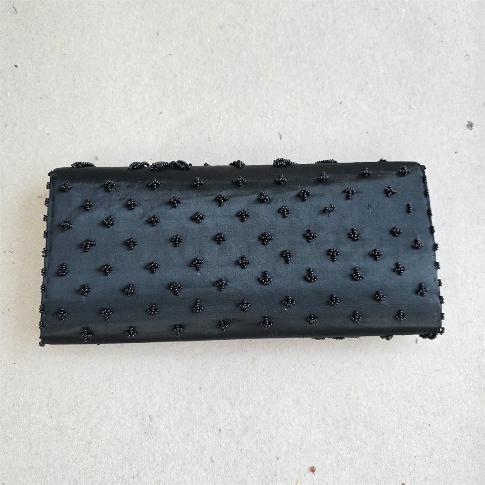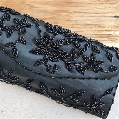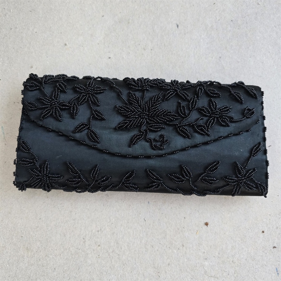 Vælg 'Sort perlebroderet aftentaske, vintage kuverttaske' for at tilføje et strejf af klassisk skønhed til dit look.